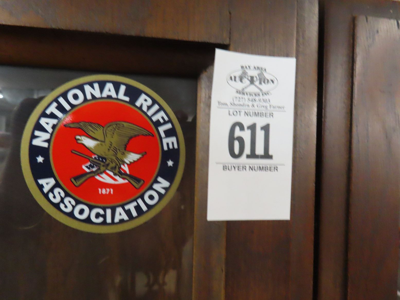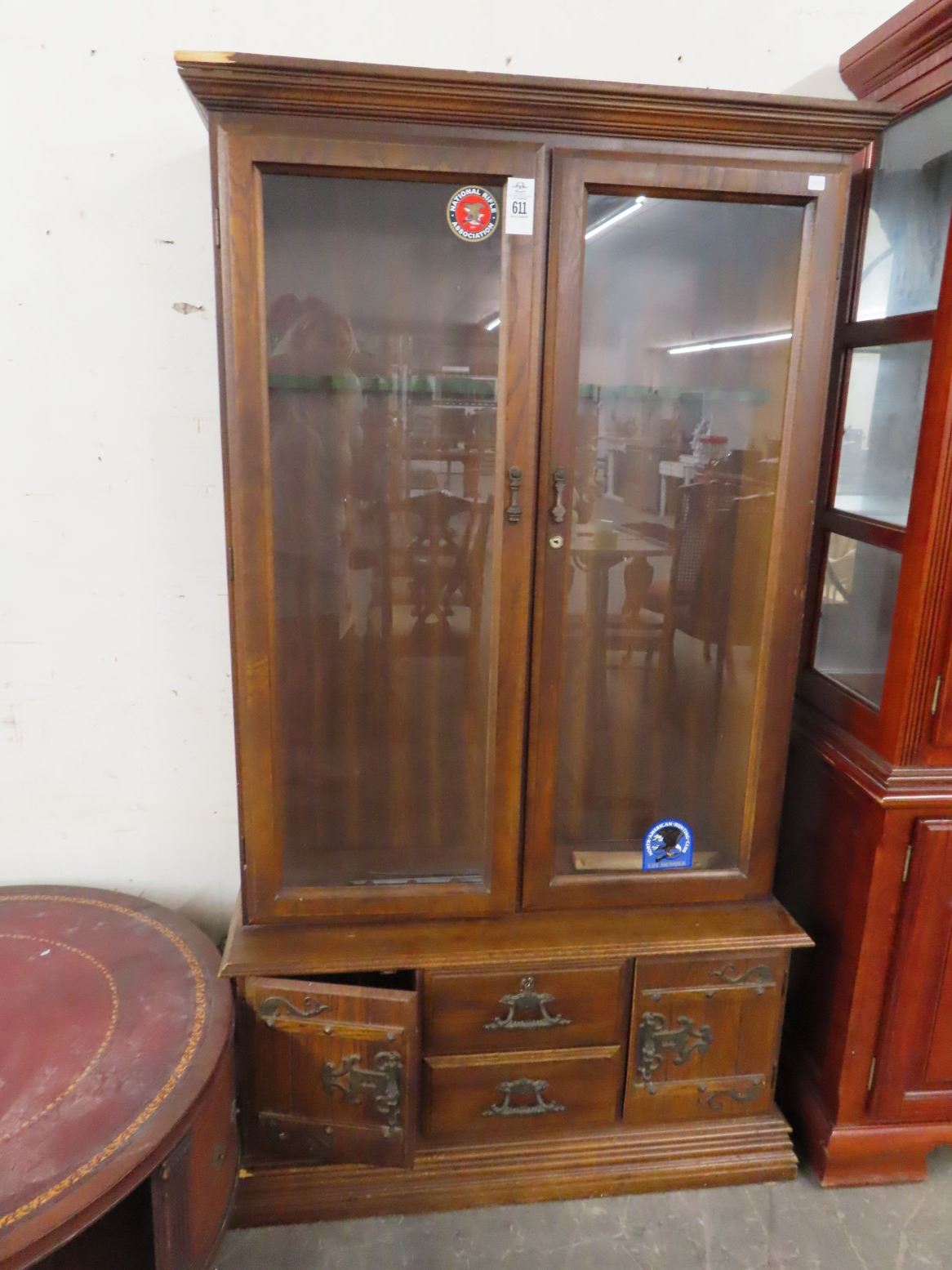 Mahogany 2 Door Glass Cabinet w/Gun Cases & Gun Holsters, Knives