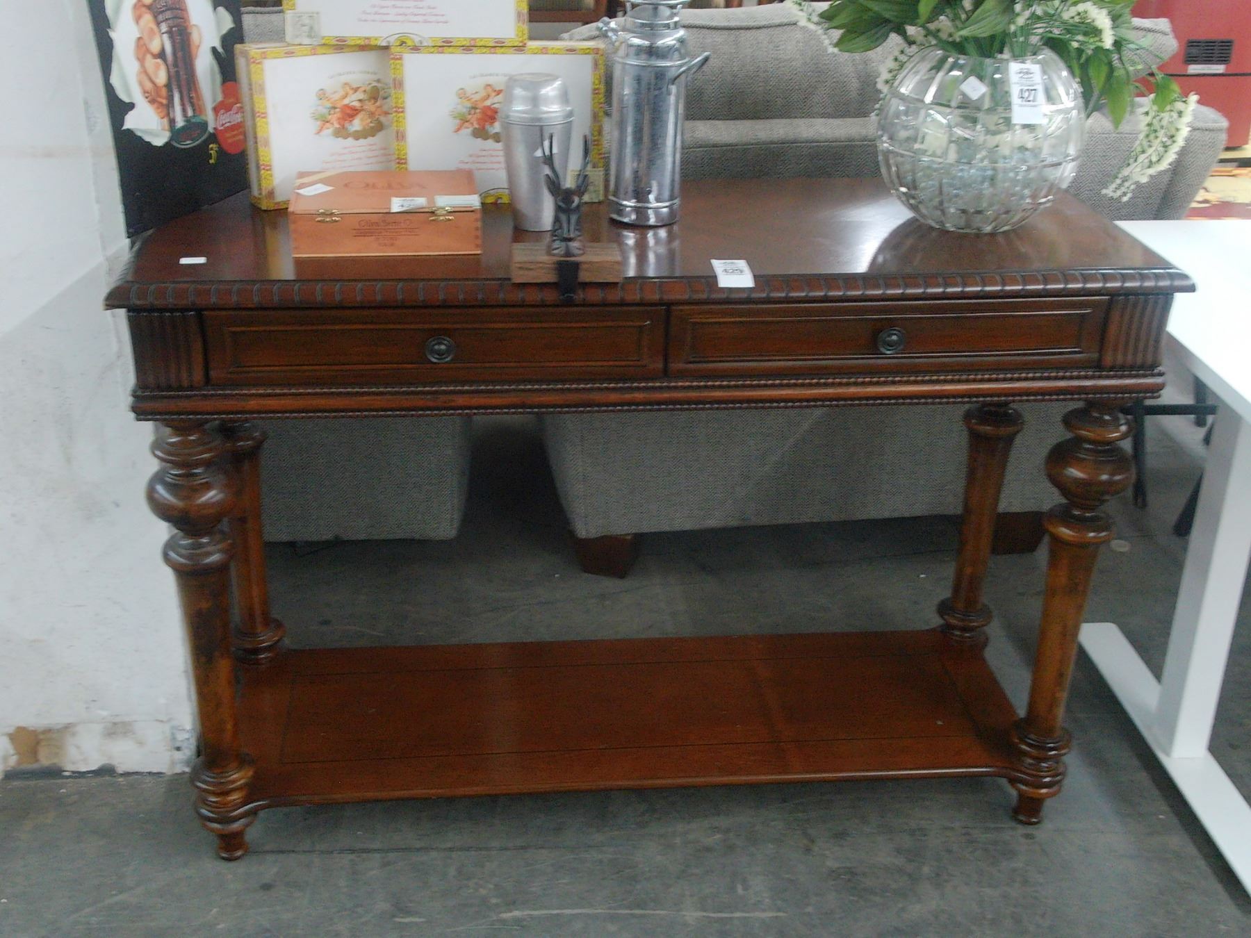 Mahogany 2 Drawer Hall Table w/Undershelf