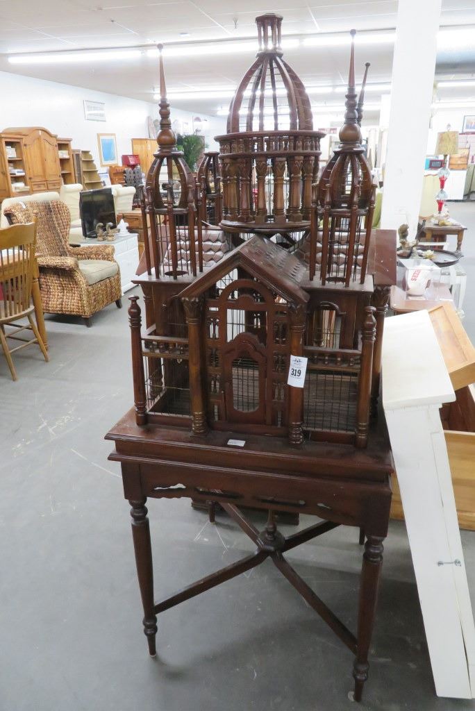Mahogany Carved Birdhouse w/Stand