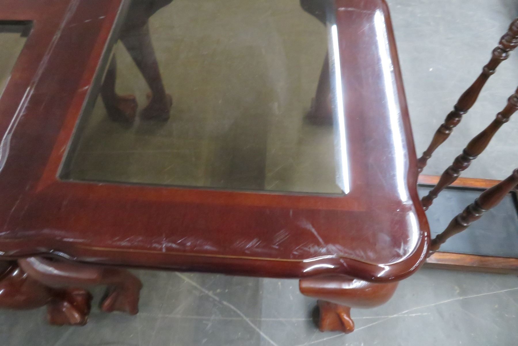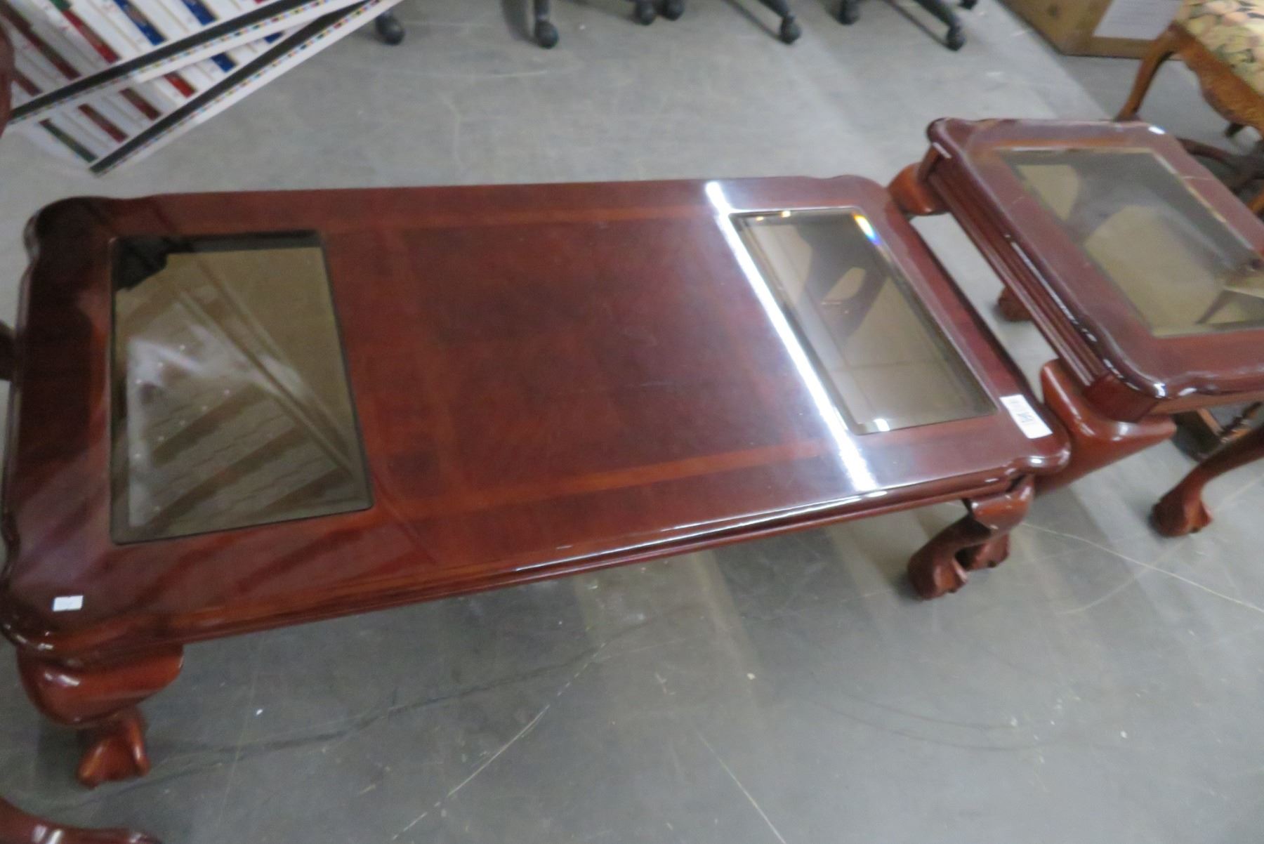 Mahogany Glasstop Rectangular Coffee Table & Square Side Table