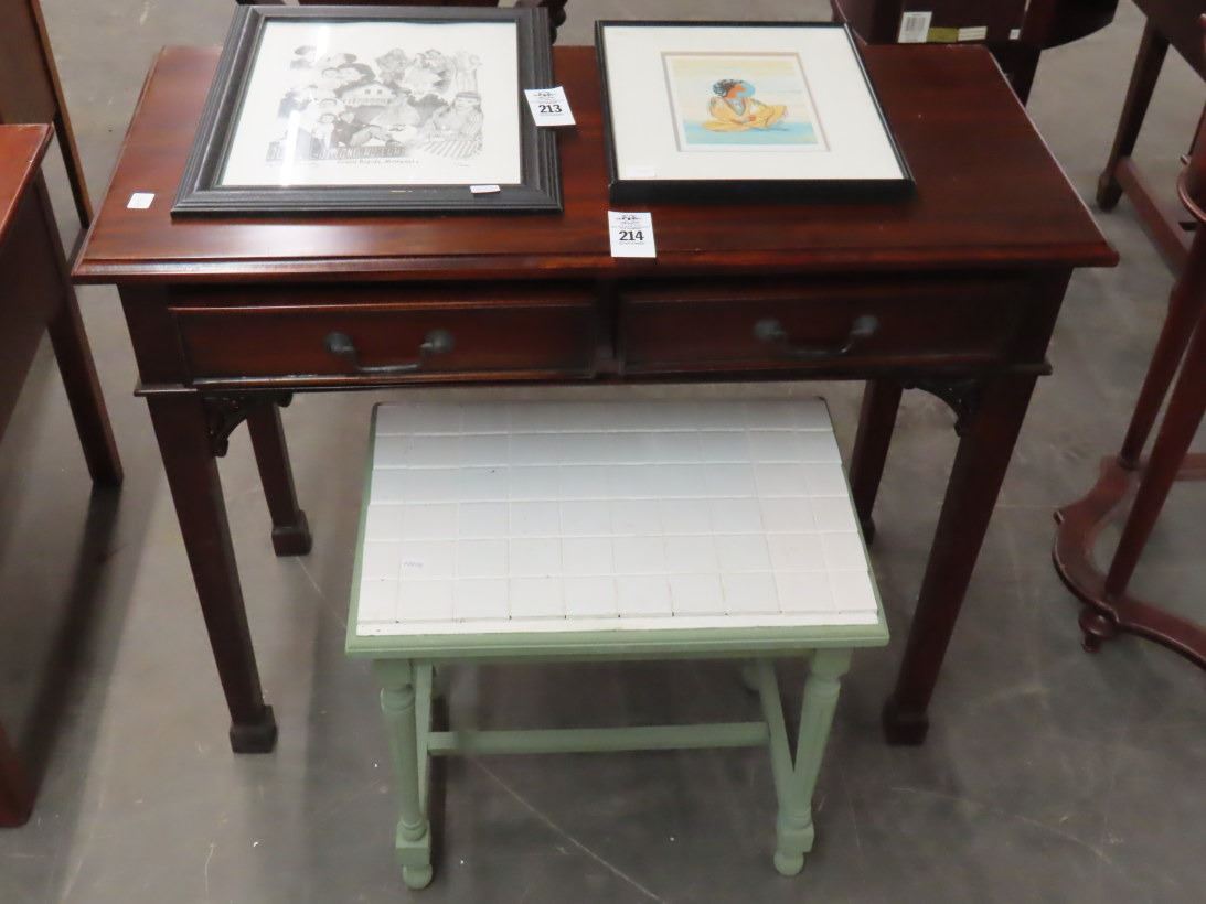 Mahogany Small Writing Desk w/Drawers and Tile Top End Table