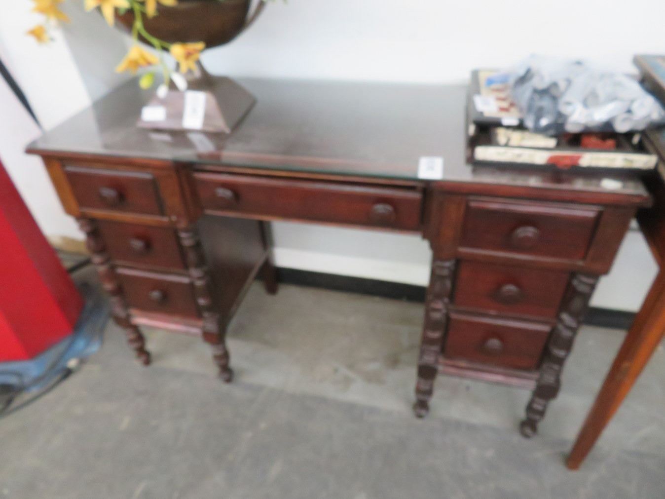 Mahogany Vintage 7 Drawer Student Desk w/Glass Top