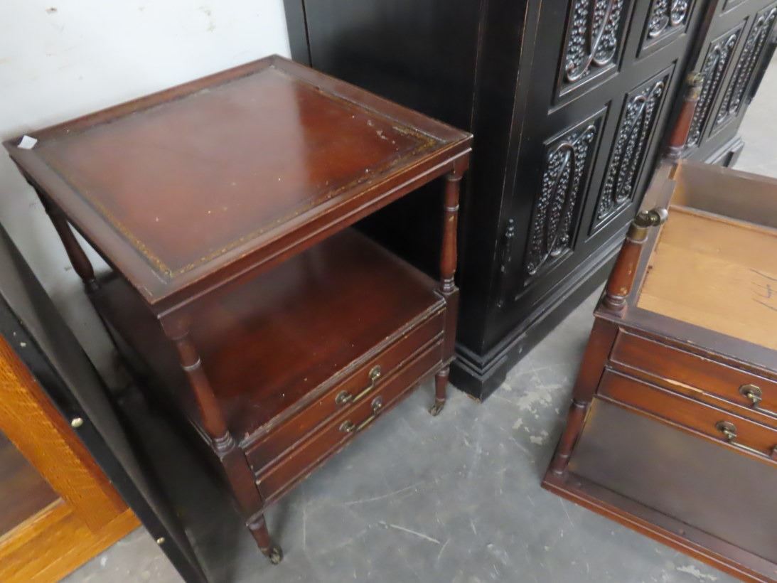 Mahogany w/Leather Inlay Rolling End Tables -Pair - One Needs Leg Repair