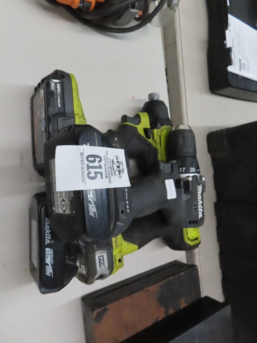 Makita/Ryobi Cordless Drill w/4 Batteries - (No Charger)