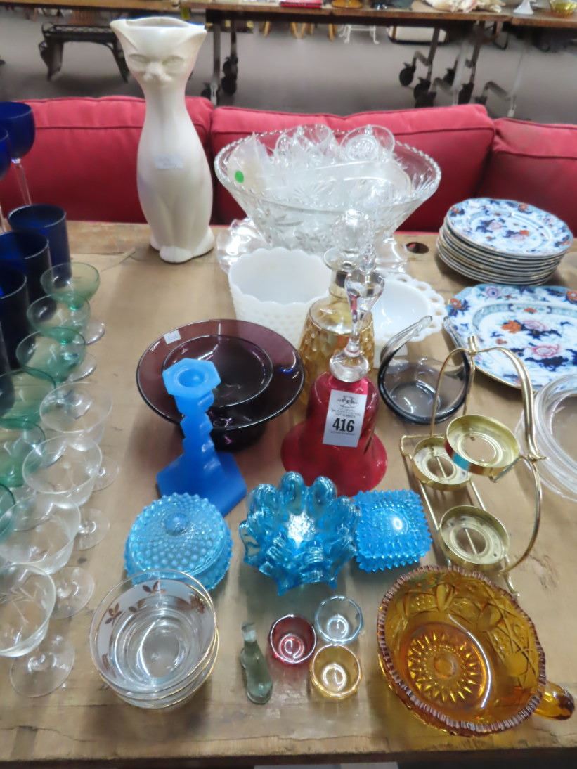 McCoy Cat Planter, Punch Bowl, Milk Glass, Hobnail, Bell & Décor