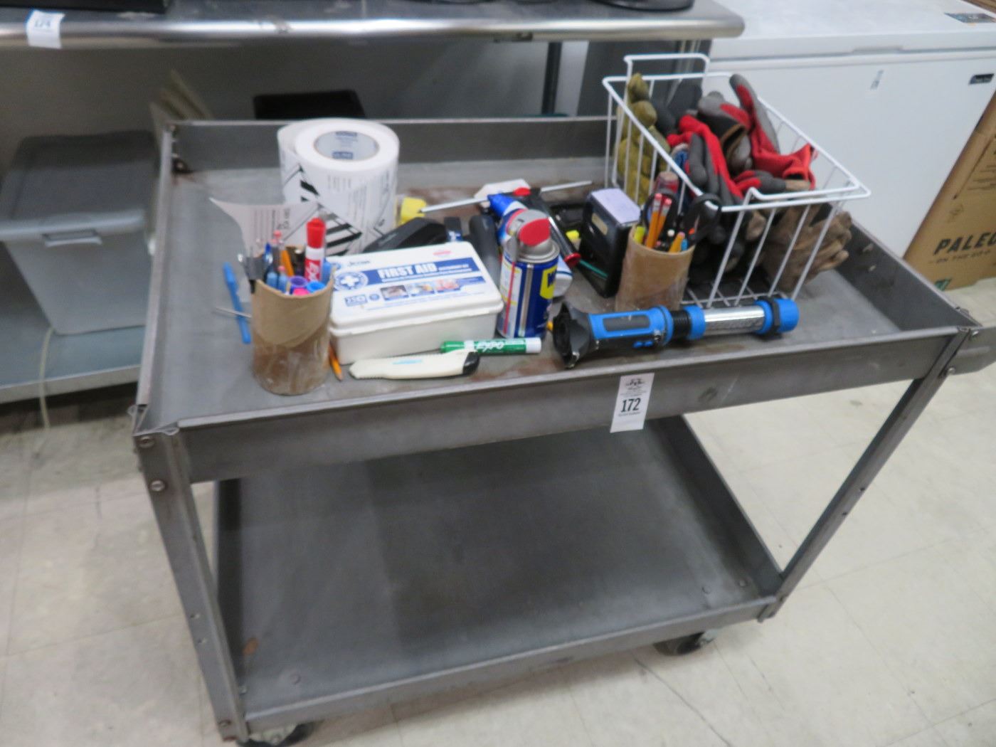 Metal 2 Shelf Warehouse Cart w/First Aid and Supplies