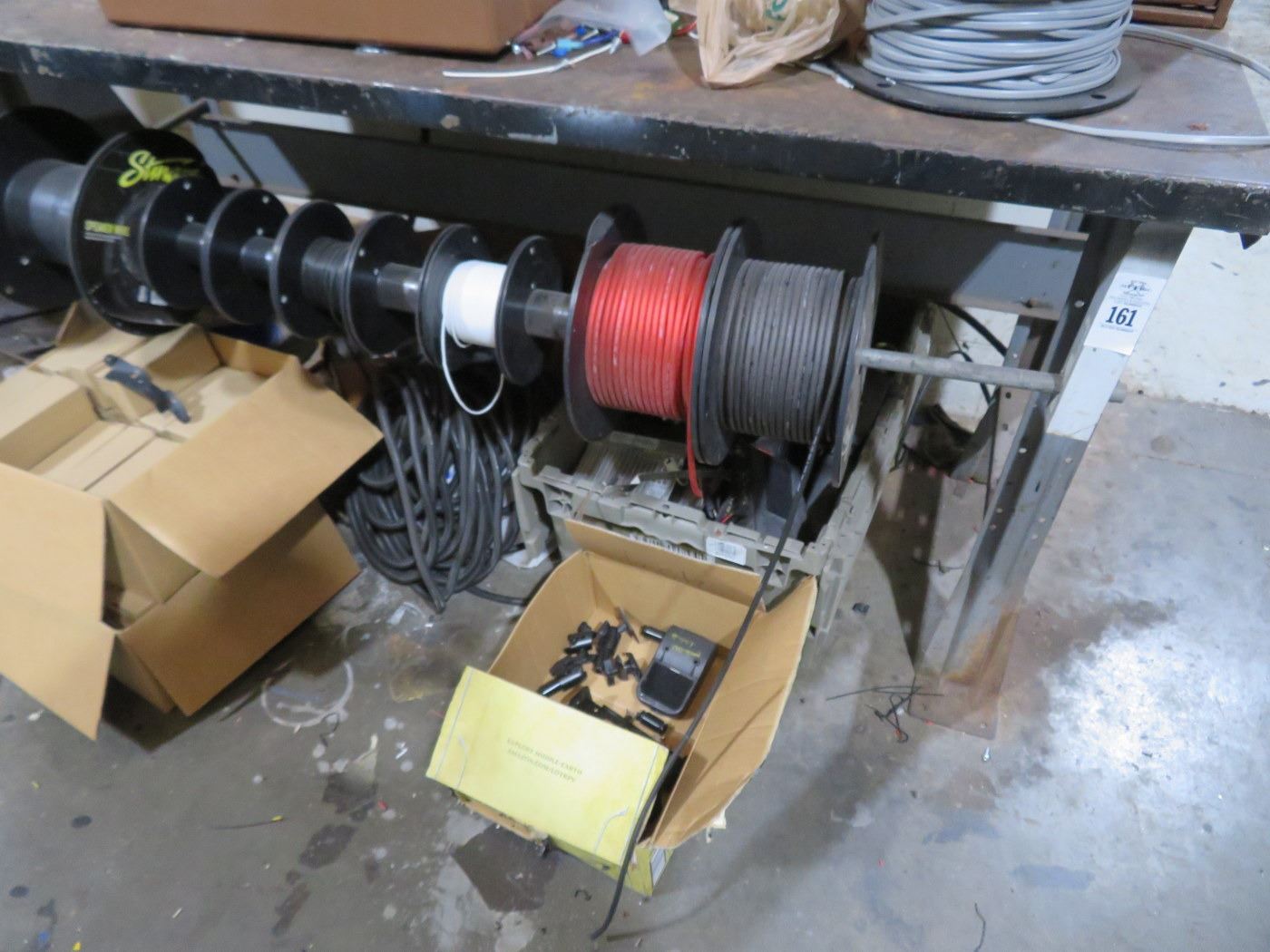 Metal 5' Work Bench w/Wire Spools and Supplies Underneath