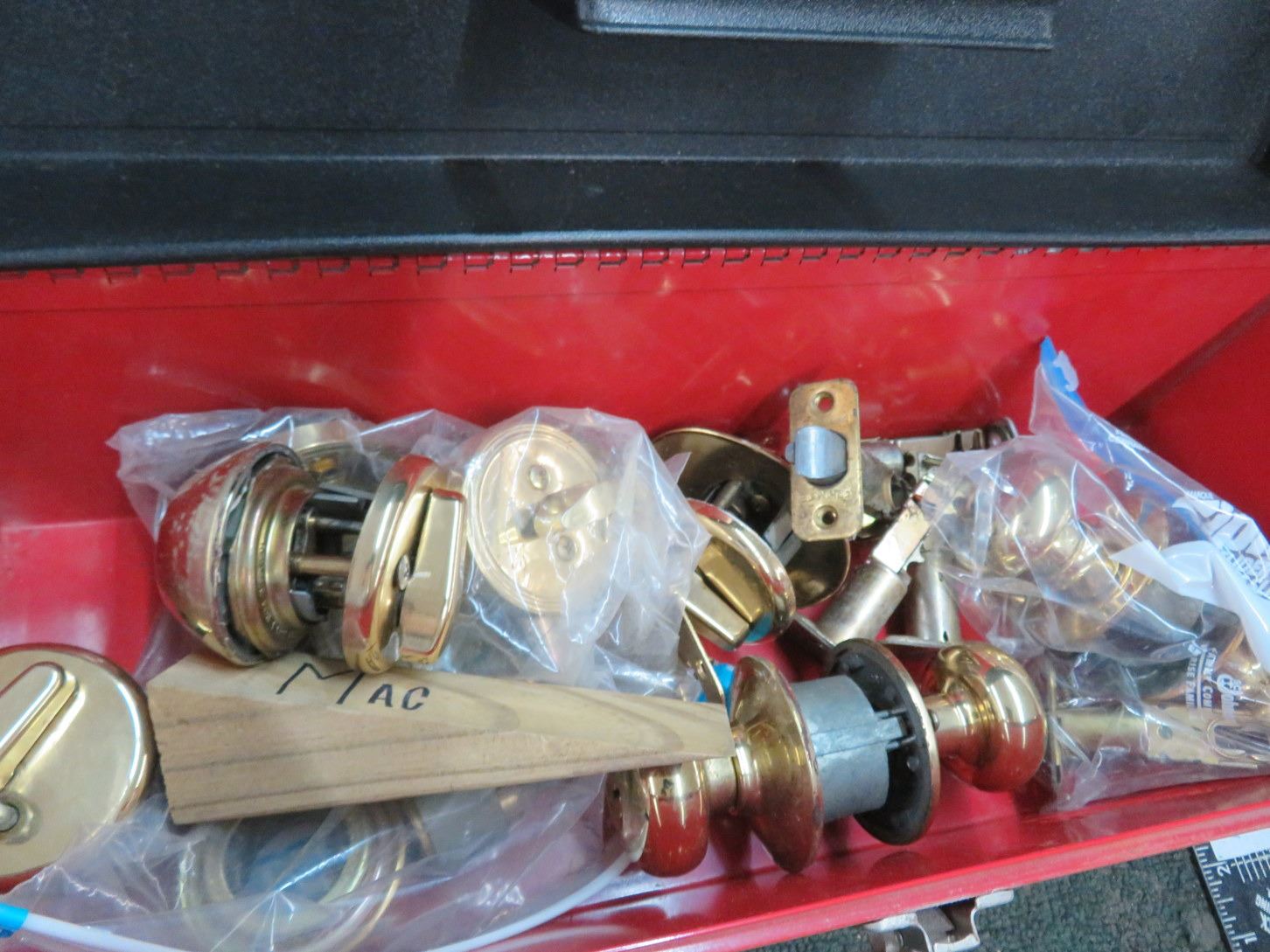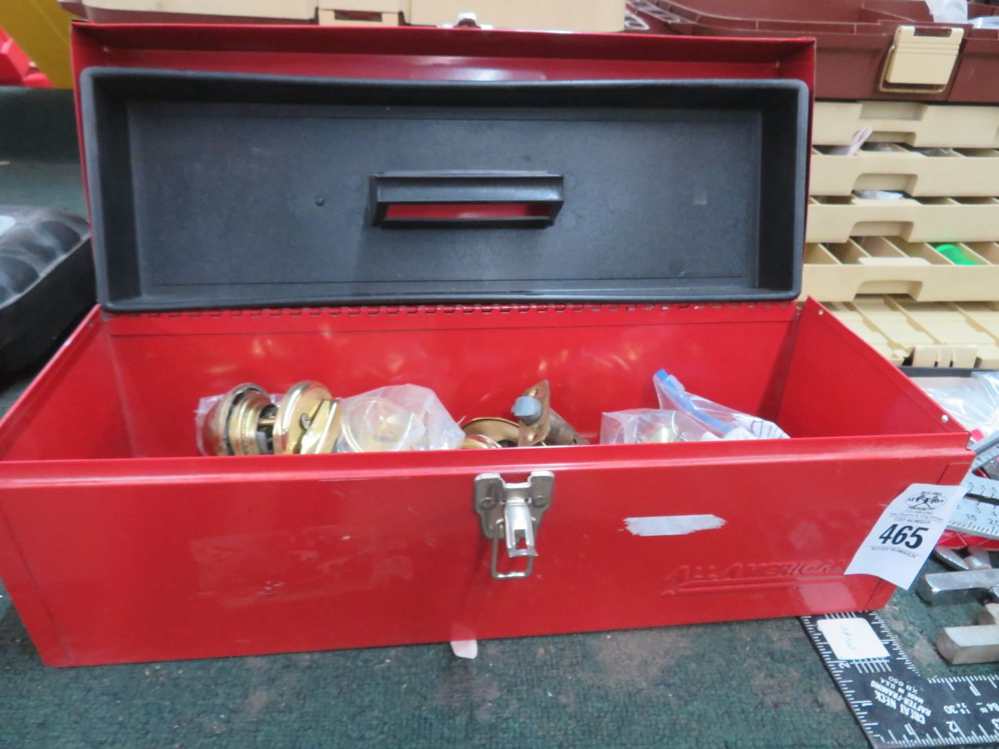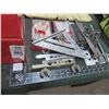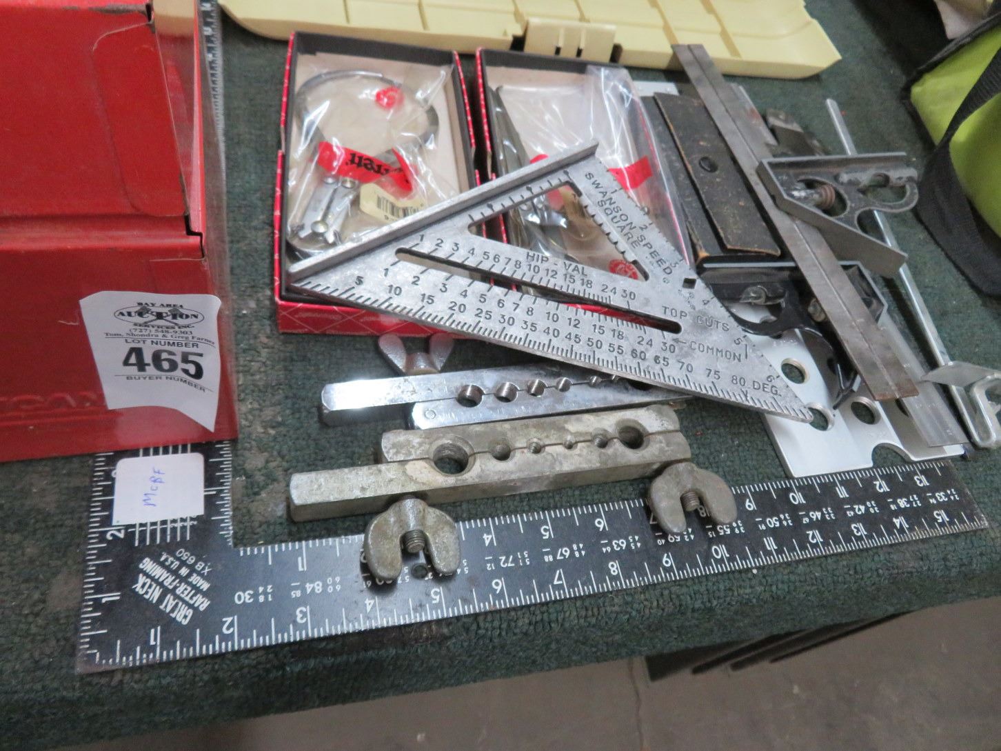 Metal Toolbox w/Door Hardware, Squares, Asst. Measuring Tools
