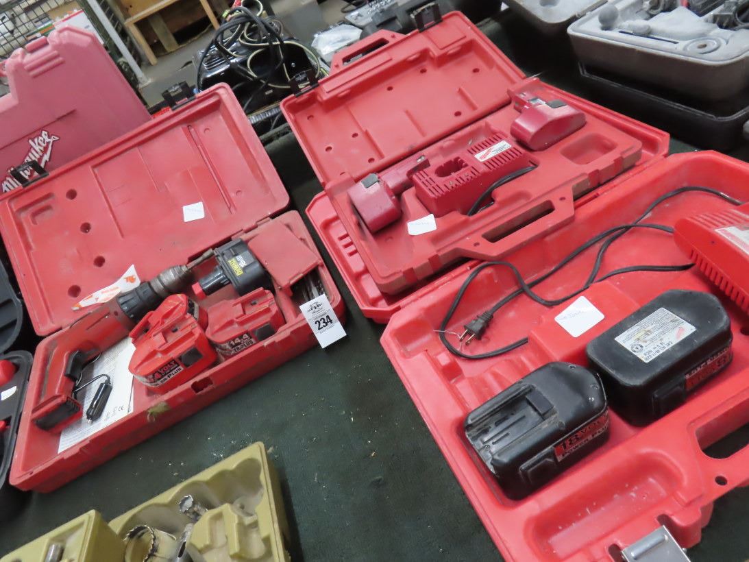 Milwaukee Cordless Drill w/Spare Cases, Batteries, Chargers