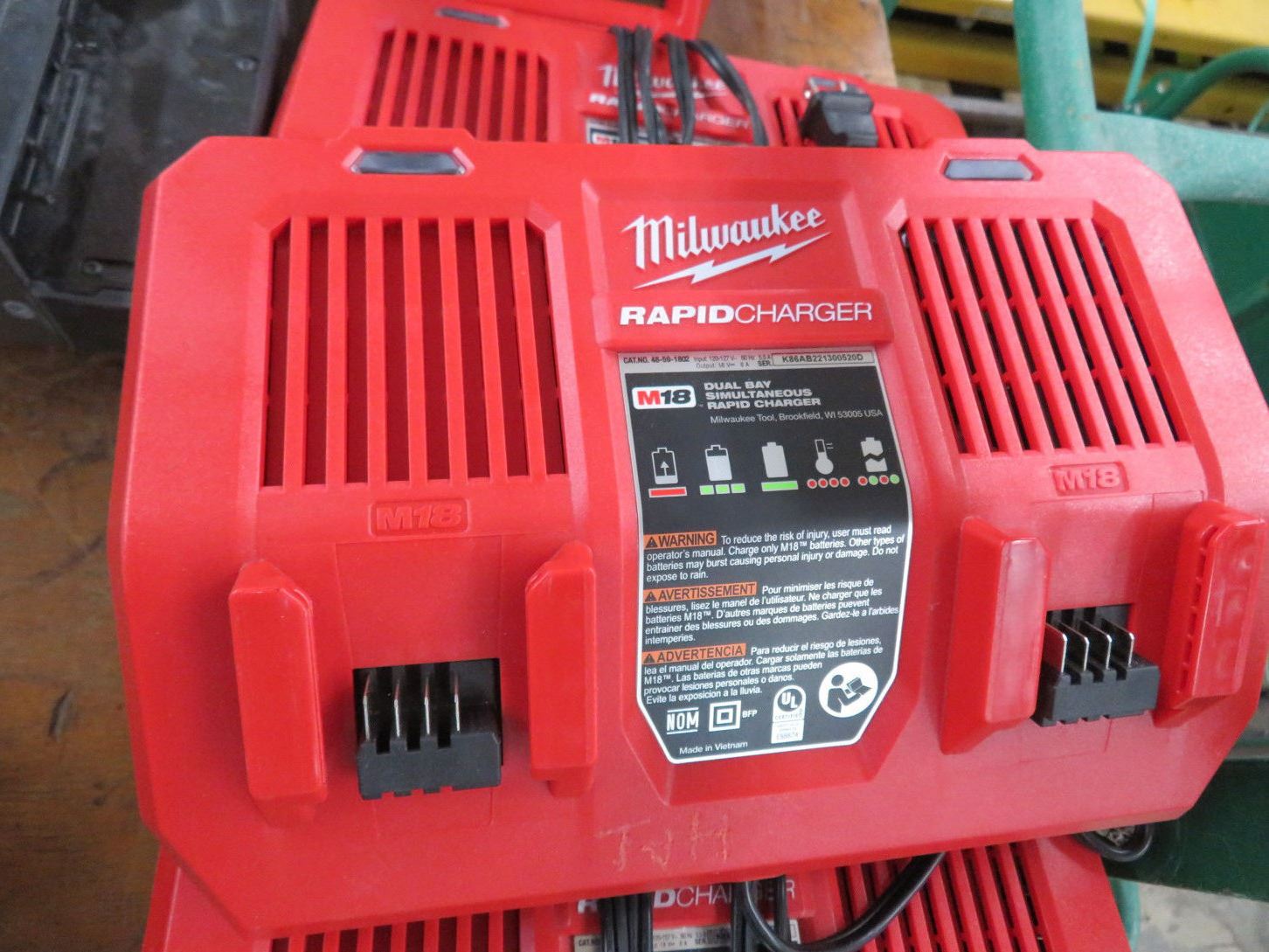 Milwaukee Large Cordless Batteries 5, Chargers 4, Flood Light