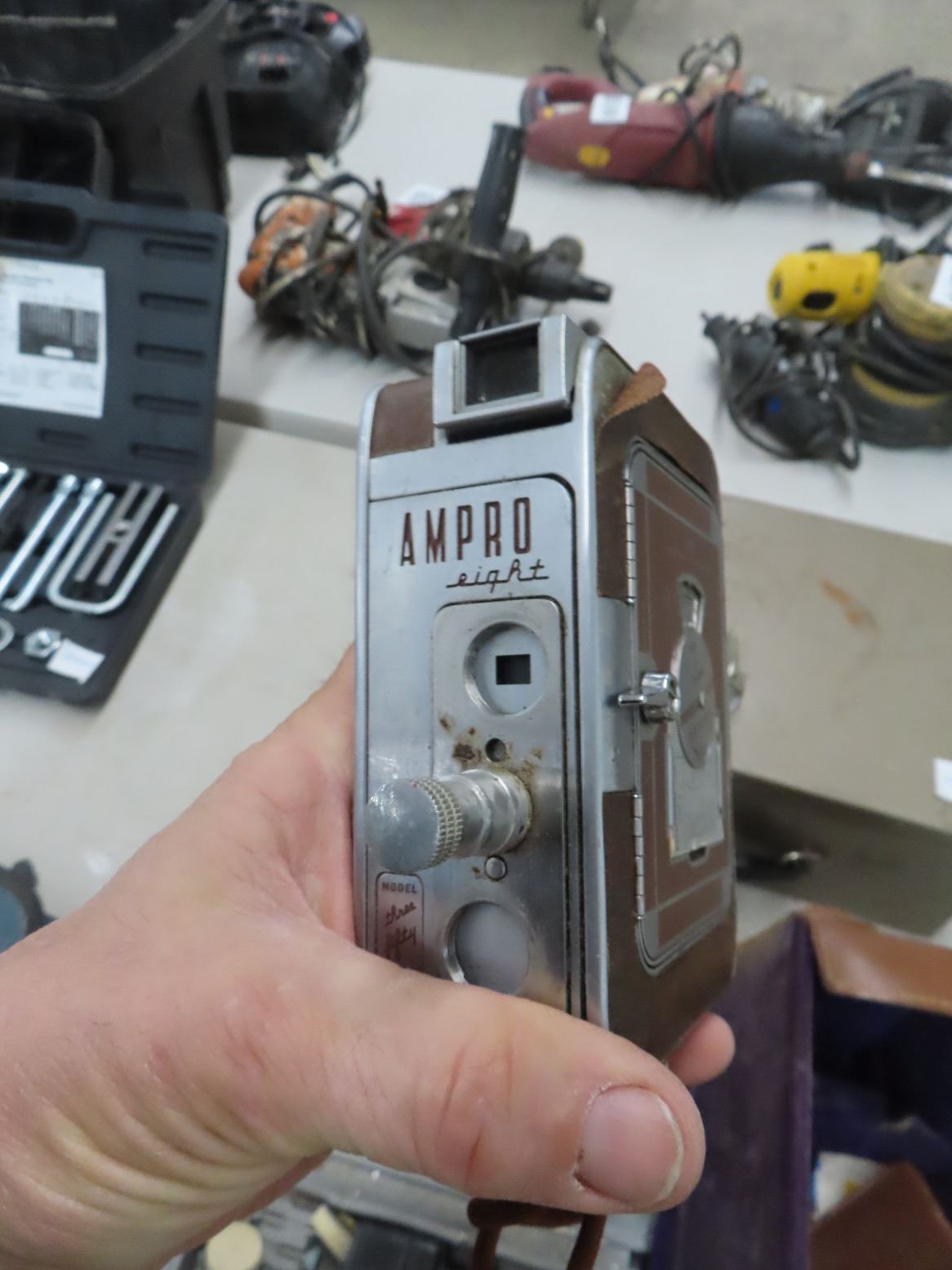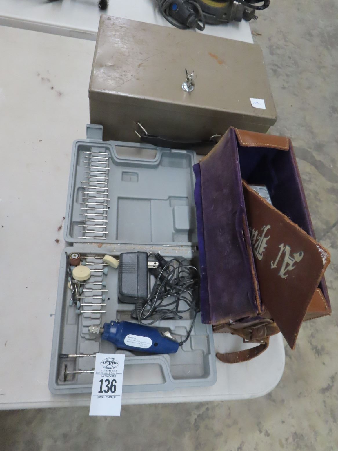 Mini Detail Sander/Engraver, Vintage Camera, Lock Box