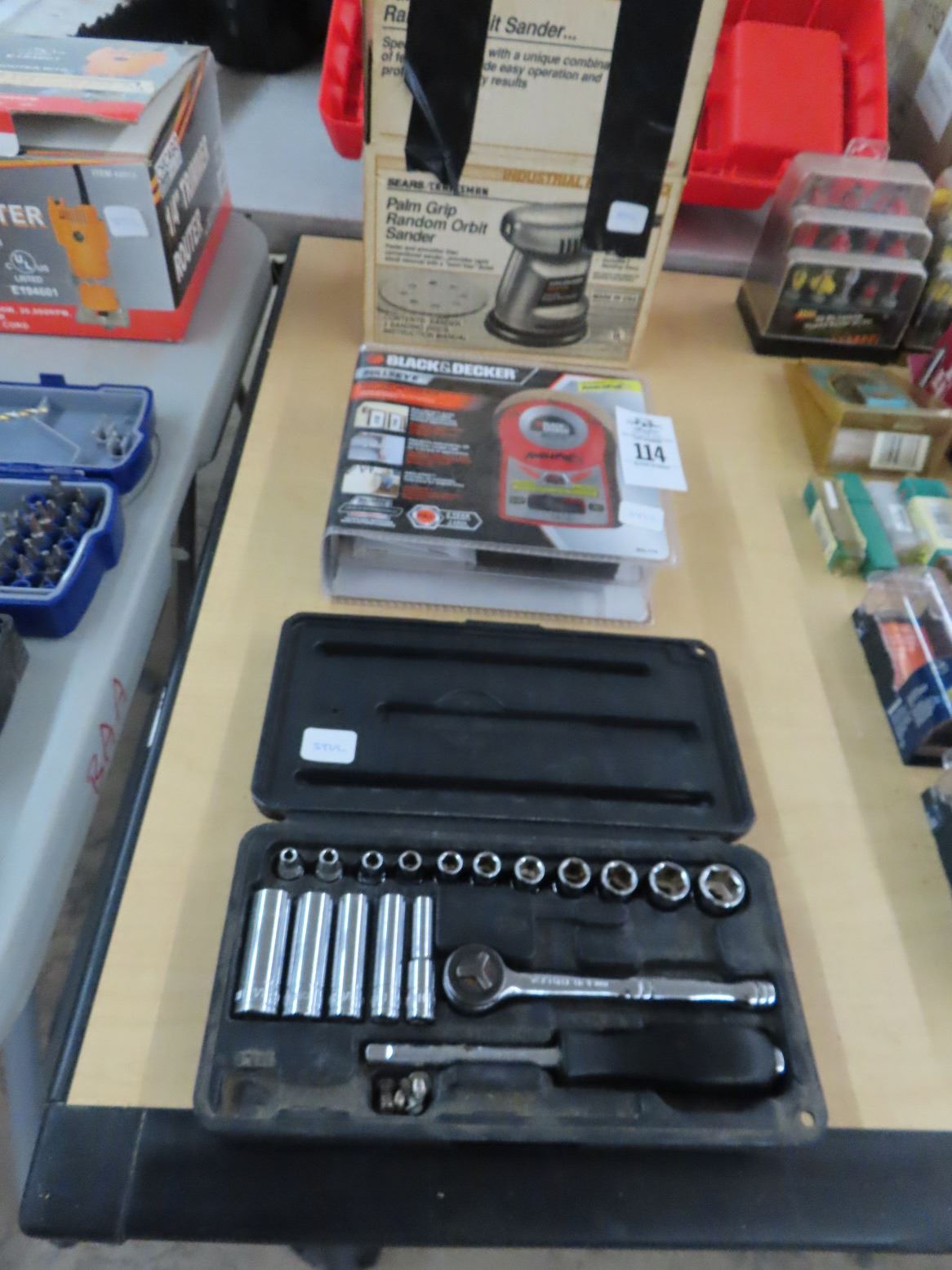 Mini Socket Set, Bullseye Laser Level, Orbital Sander