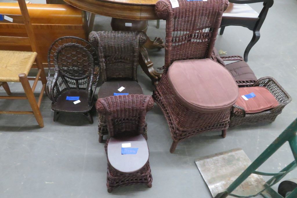 Miniature Wicker Chair, Ottomans (6)