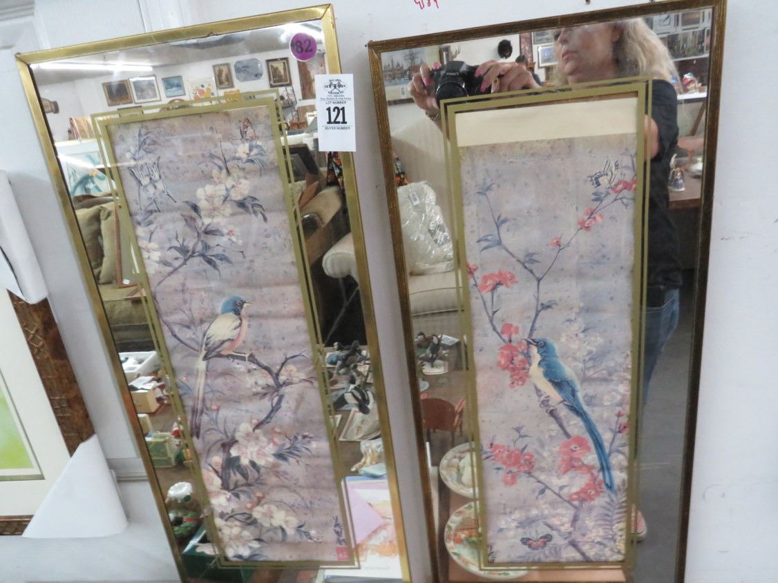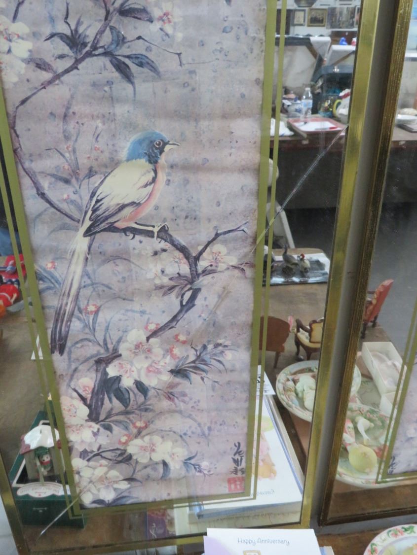 Mirrored Framed 2 Panel Bird On Branch Wall Art - One Is Cracked