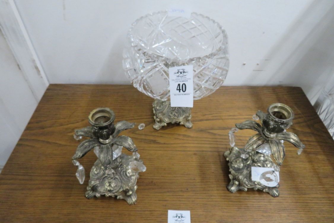 Mixed Metal Candle Stand (Pair) & Crystal Bowl