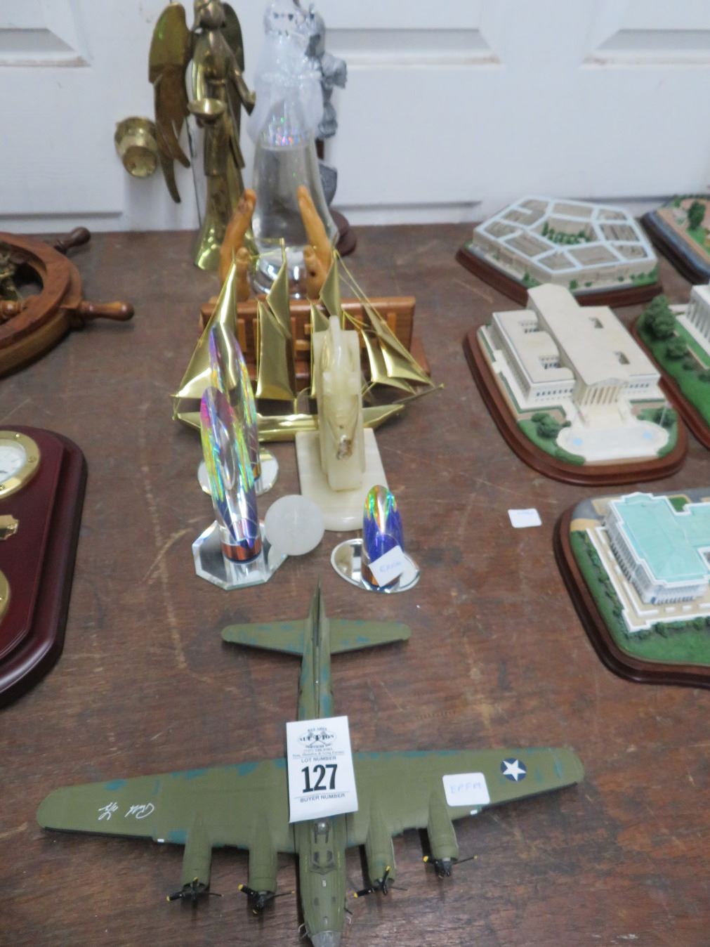 Model Bomber, Brass Sailboat, Asst. Décor Items