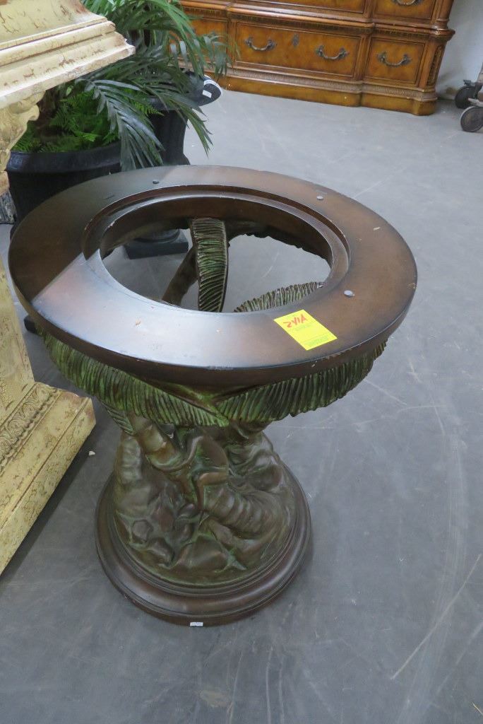 Monkey In Palm Tree Round End Table - Nds. Glass