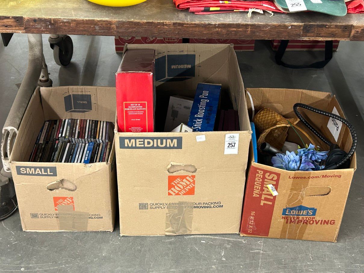 Music CD's, Christmas Décor, Roasting Pan, Baskets, Décor - 3 Boxes