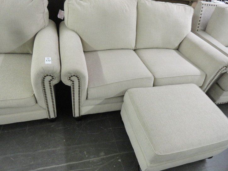 Nail Trim Fabric Sofa, Loveseat, Ottoman Set