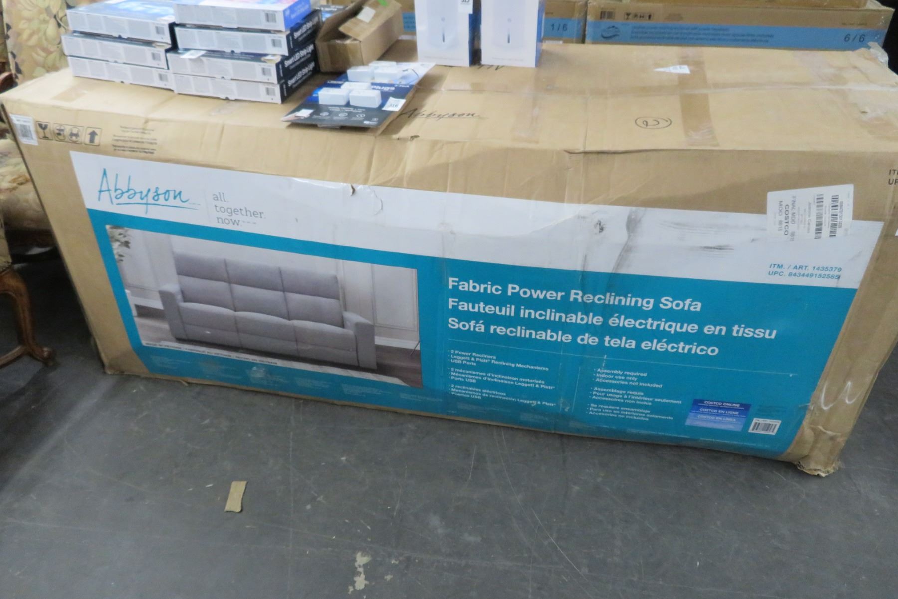 New Abbyson Grey Fabric Power Reclining Sofa