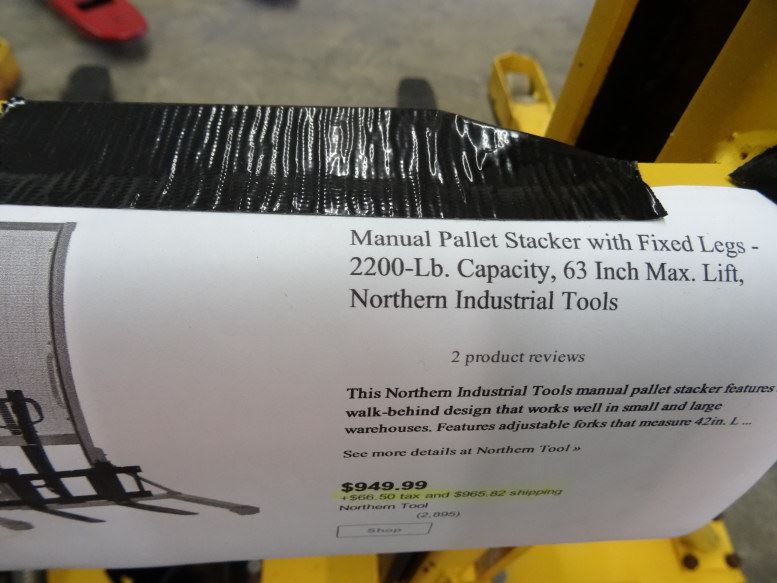 If you are having a freight company pickup at the auction warehouse and the item needs to be palletized, strapped and wrapped there is a Minimum $55 charge per normal size 4x4 pallet.