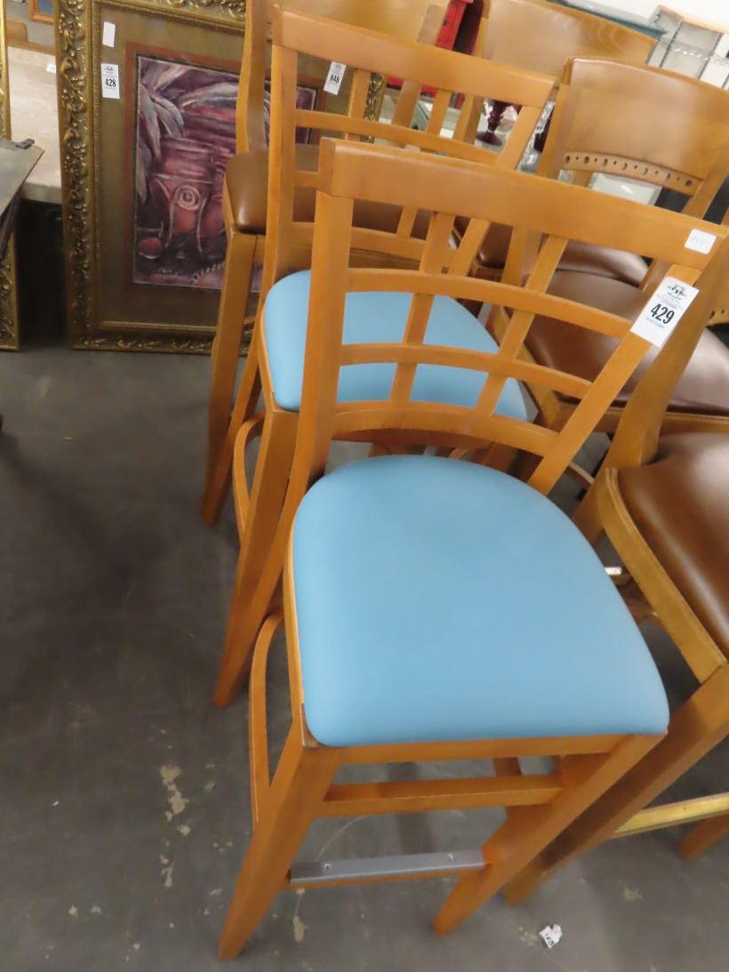 Oak Contemporary Blue Padded Bar Stools - Pair