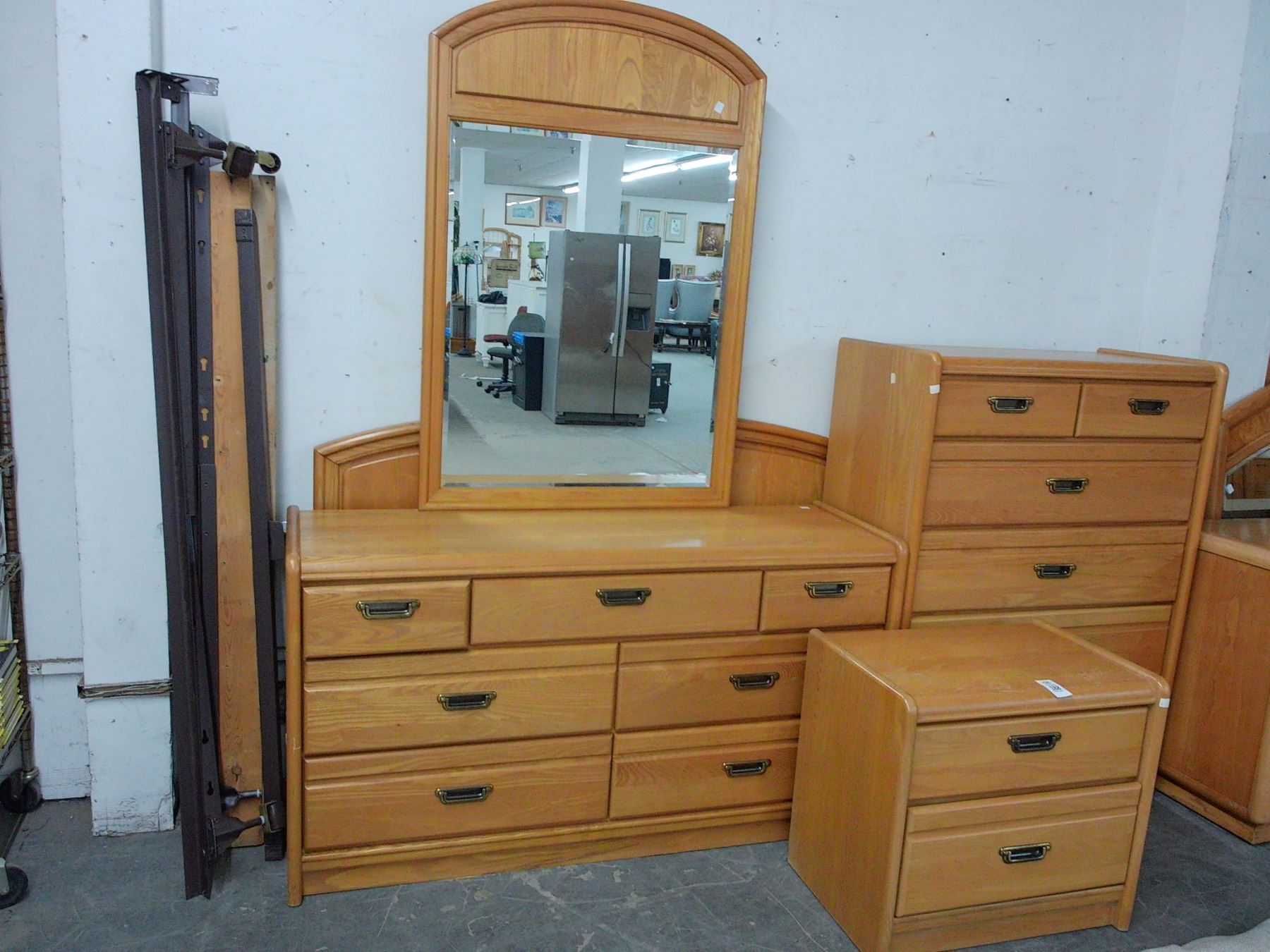 Oak Queen Bed w/Dresser/Mirror/Nightstand/High Boy Set