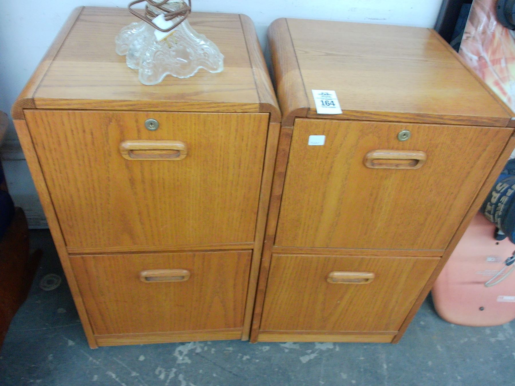 Oak Rolling 2 Drawer Filing Cabinets - Pair