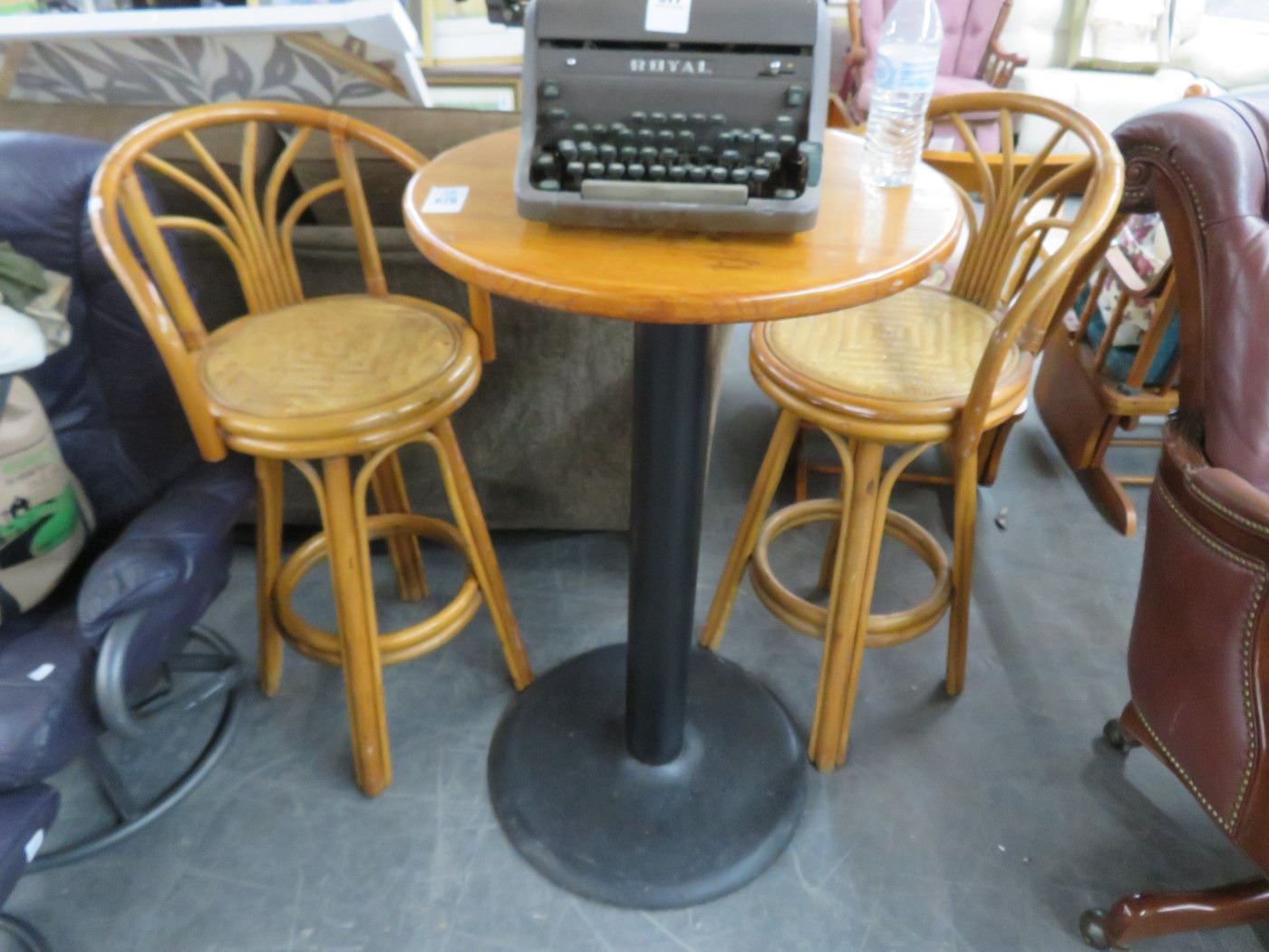Oak Round Highbar Table w/2 Stools