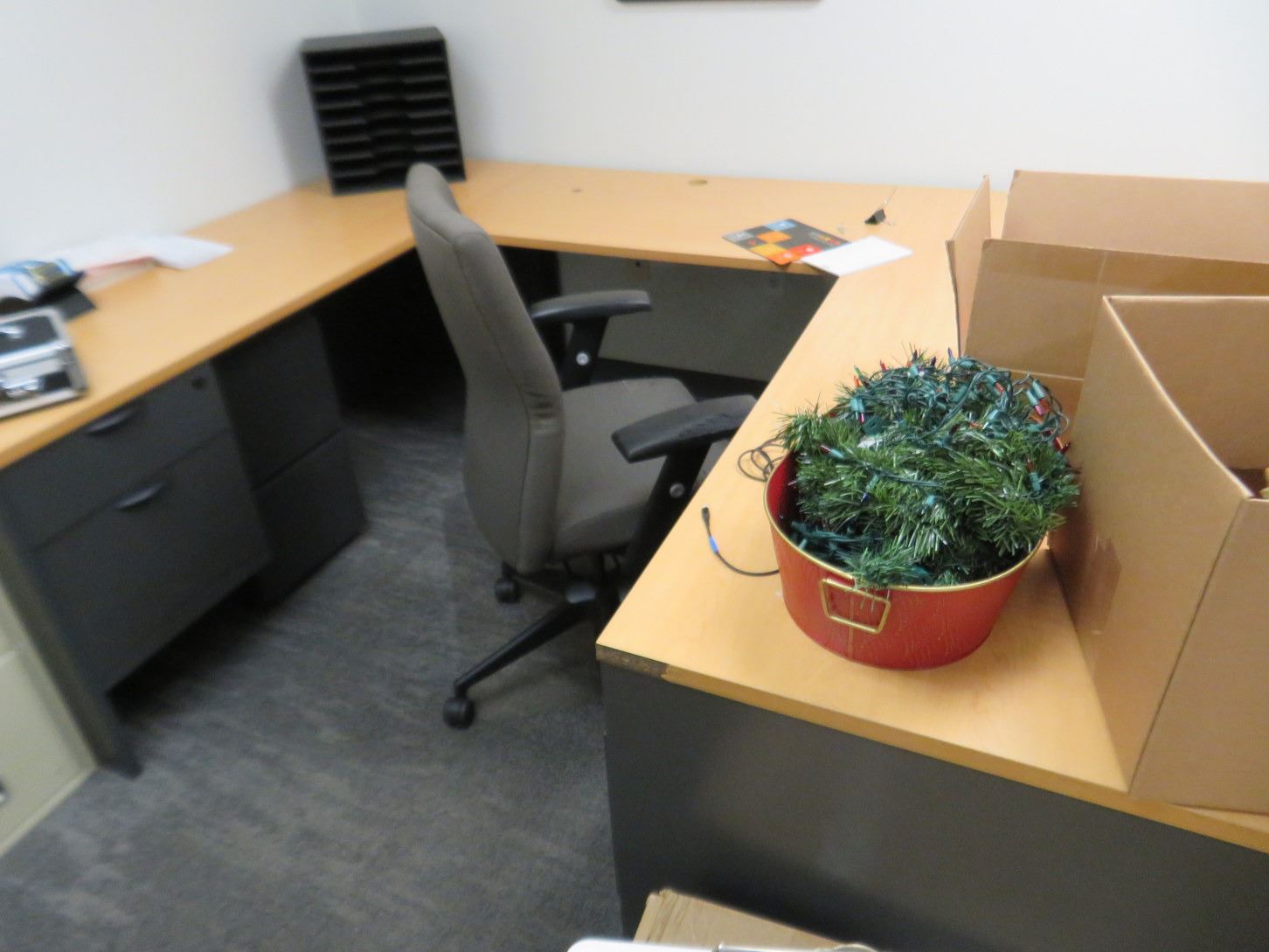 Oak Top Black Base U Shape Office Desk