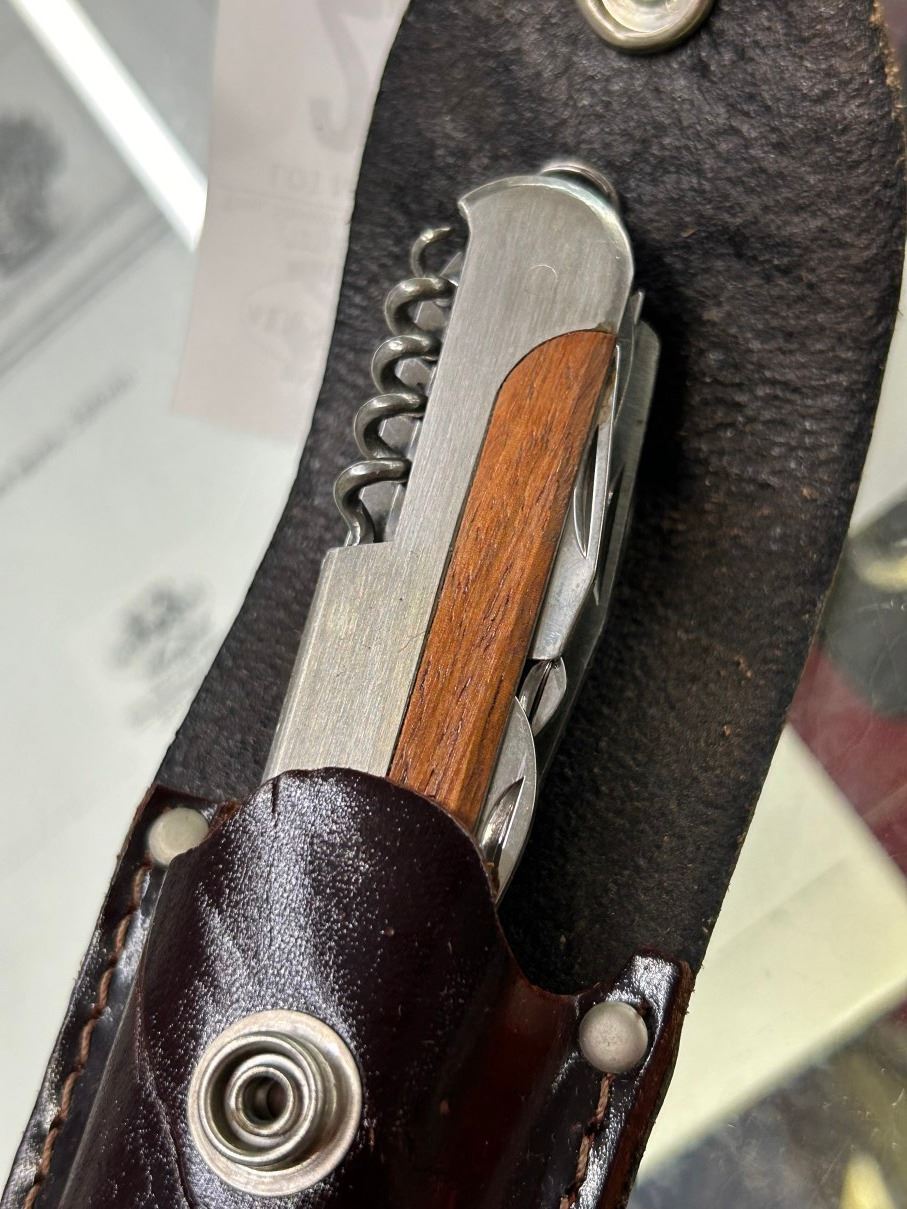 Oak Trim Stainless Pocket Knife w/Sheath