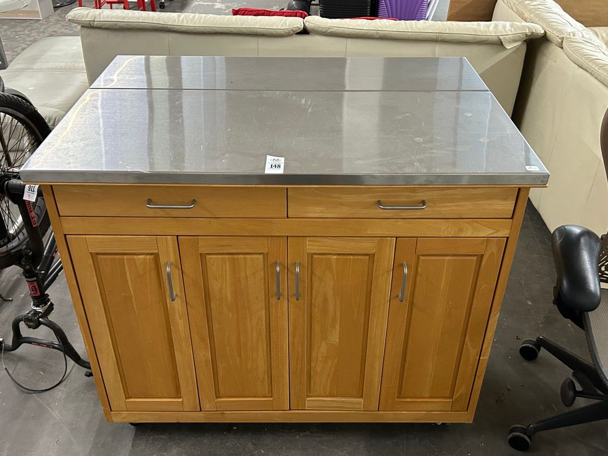 Oak w/SS Top Flip Up Bar Kitchen Island