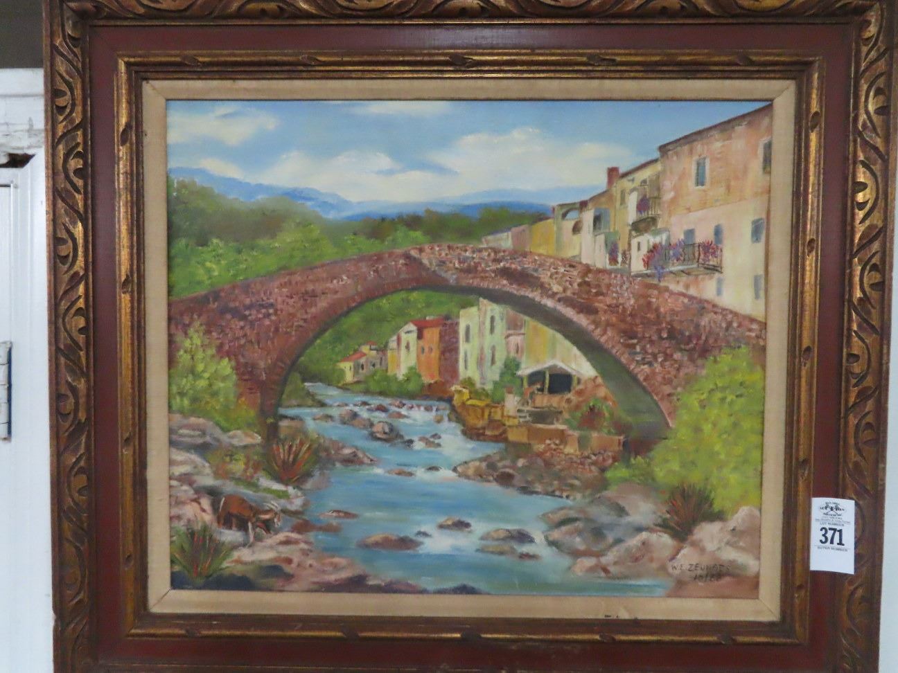 Oil On Board Bridge Villa Scene - 32" x 28"