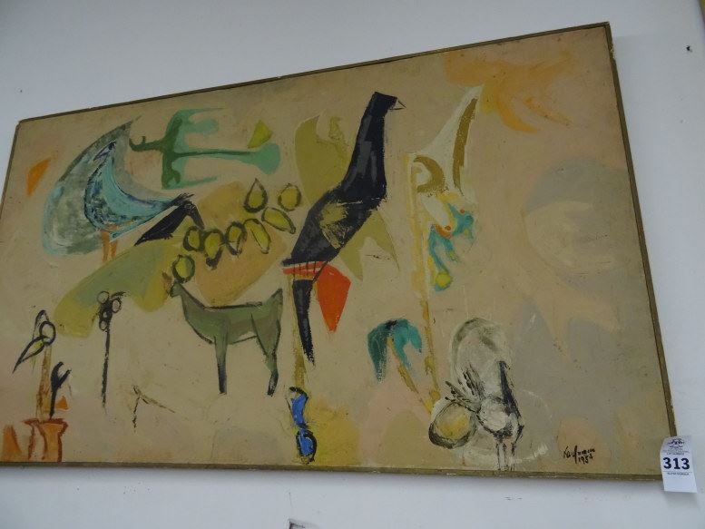 Oil On Canvas "Farm Animals" Signed Kaufman