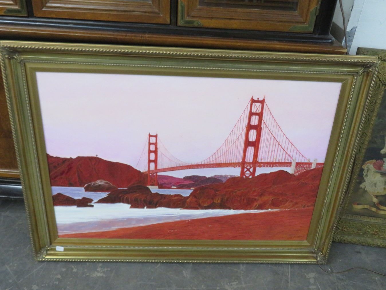 Oil On Canvas Golden Gate Bridge Scene Signed Makres 24 x 36