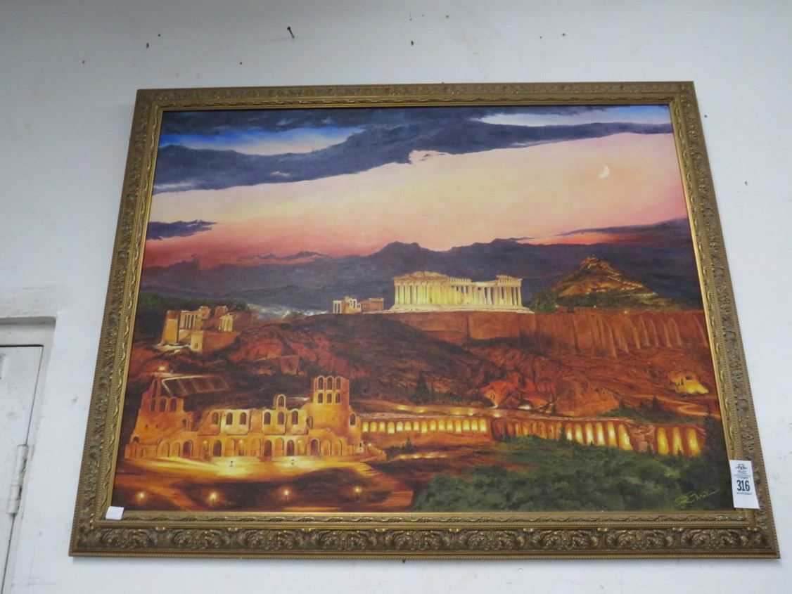 Oil On Canvas Greek Ruins - Signed Makin - 30 x 36