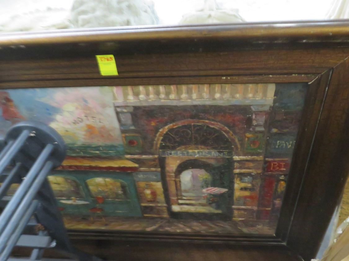 Oil On Canvas Hotel Street Scene - 30 X 36