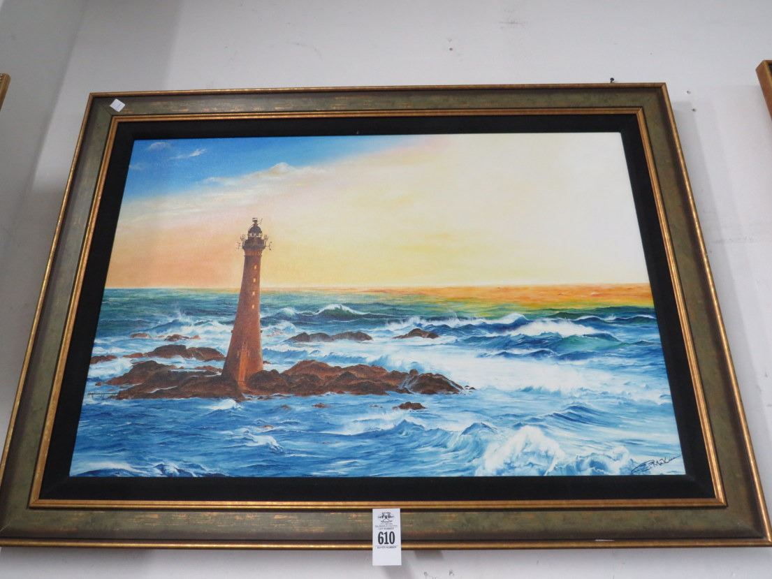 Oil On Canvas Lighthouse - Signed Makres - 30 x 36