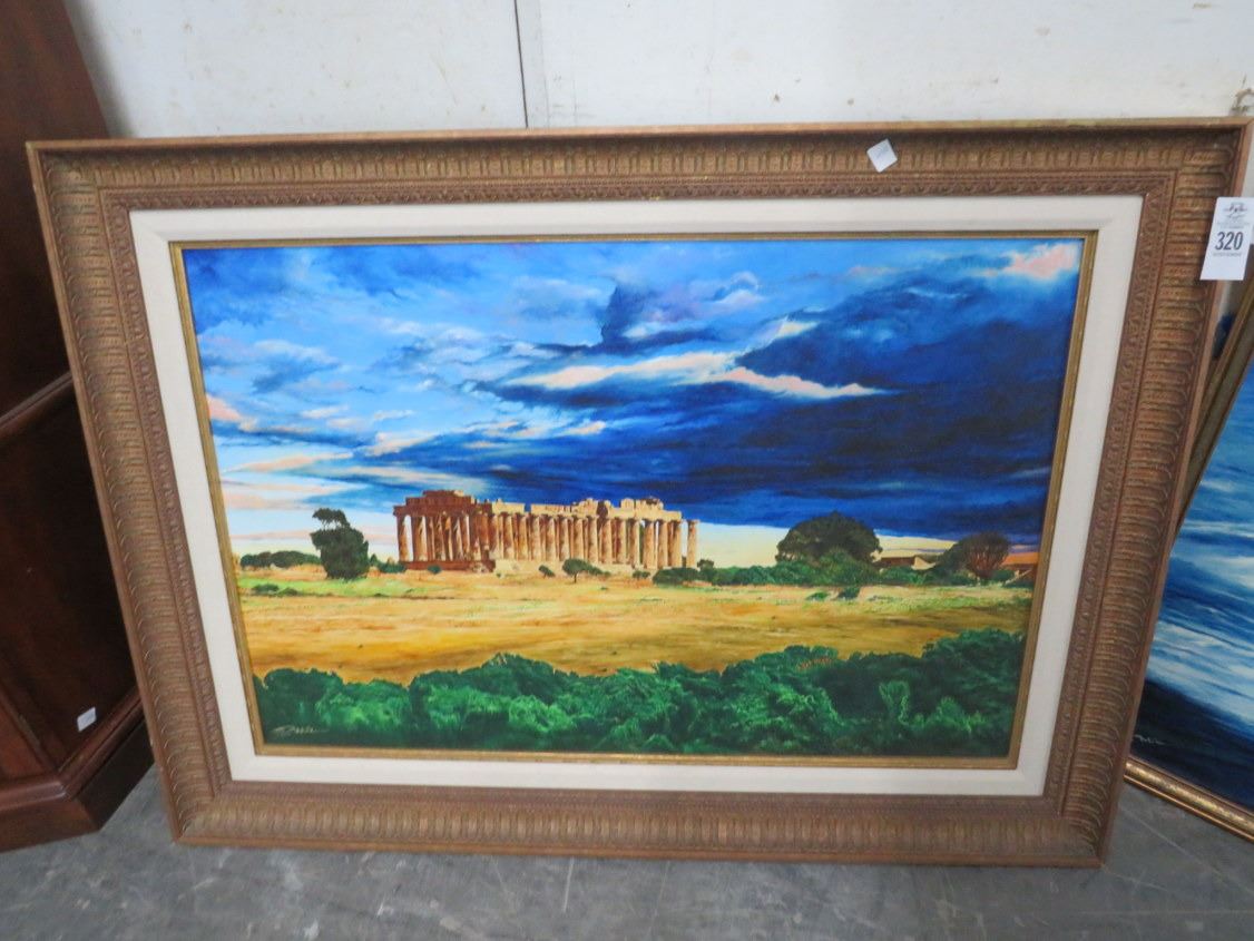 Oil On Canvas Wall Art of Greek Ruins - Signed Makins - 30 x 36