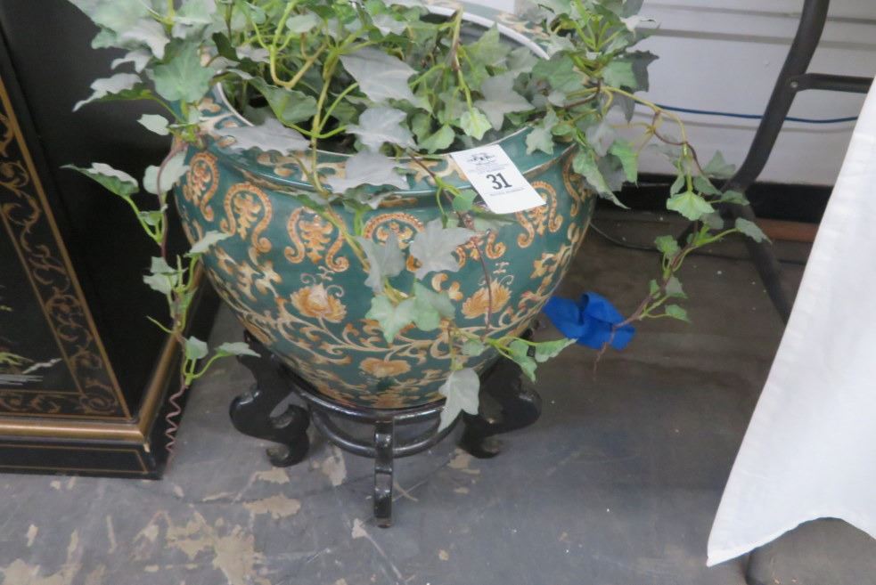 Oriental Ceramic Planter w/Stand