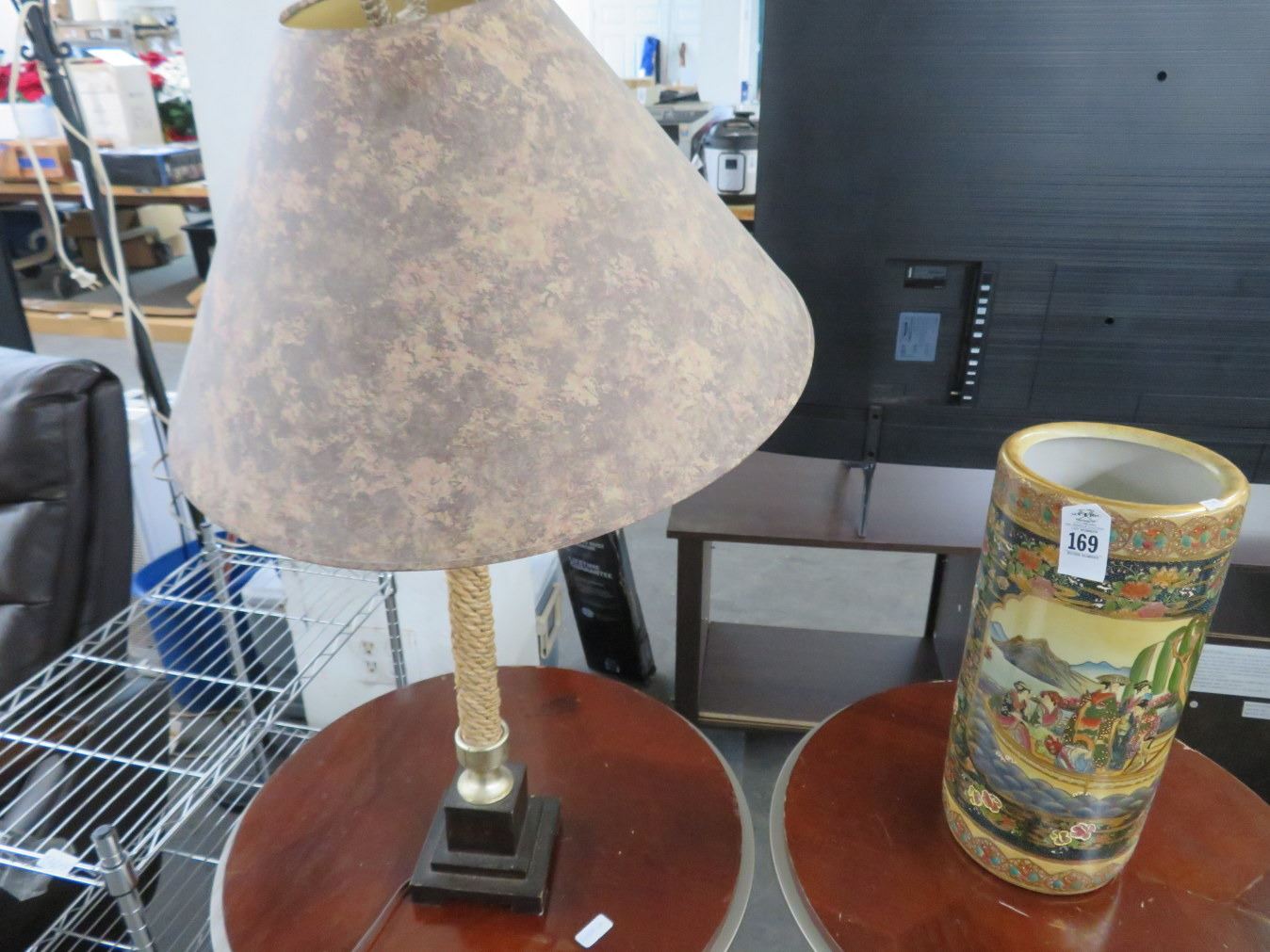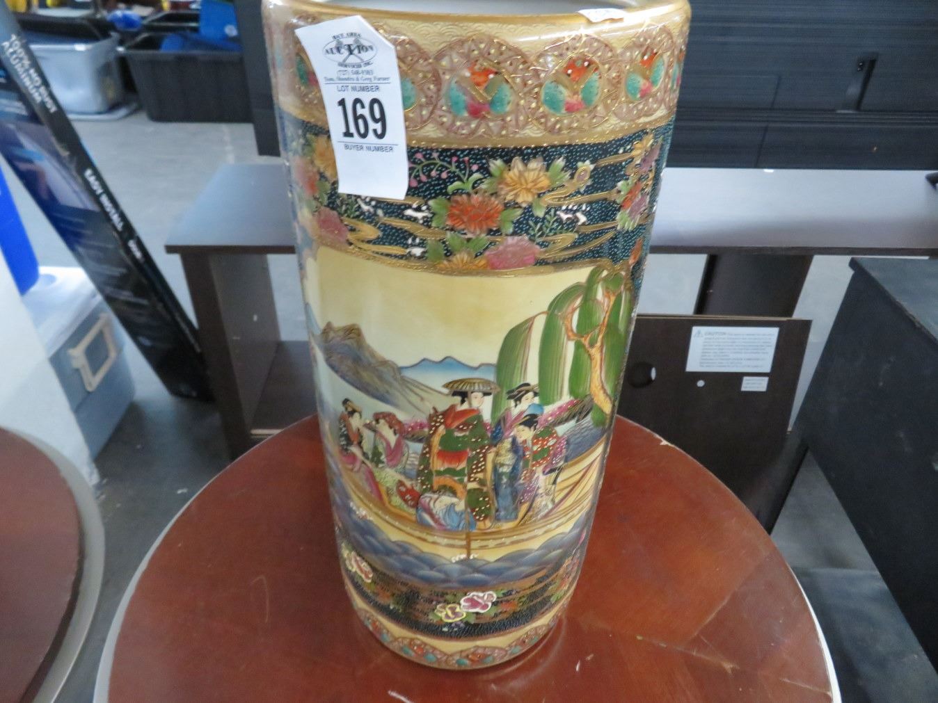 Oriental Painted Ceramic Umbrella Stand and Rope