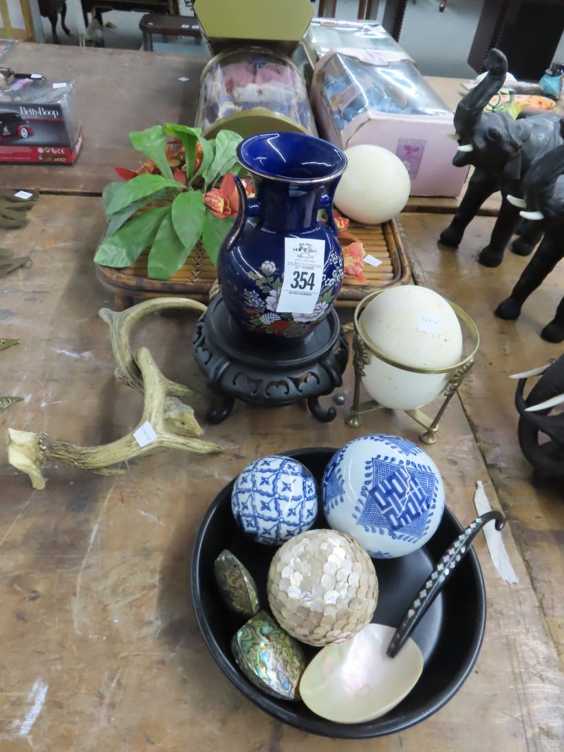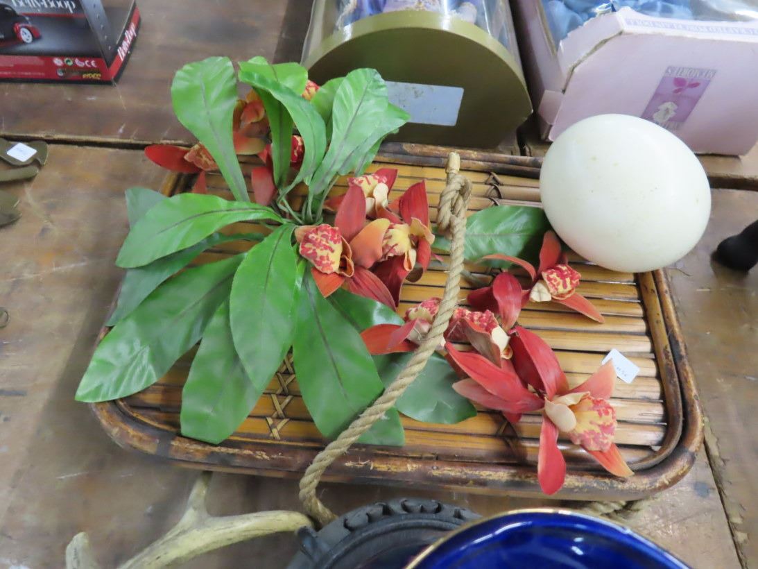 Oriental Vase, Egg, Spears, Bamboo Tray