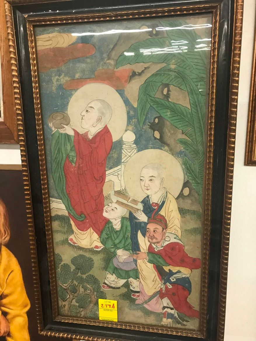 Original Antique Chinese Watercolor Small Painting of Immortals w/Old Prov