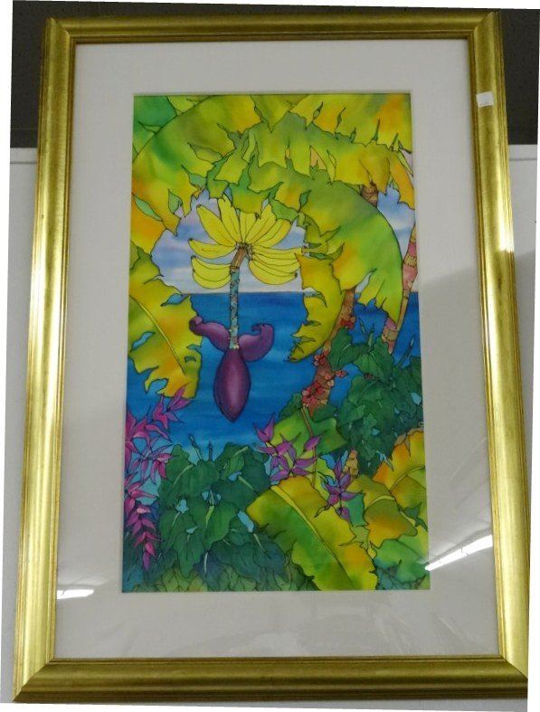 Original Water Color on Silk - Carribean Art by Rita Van Gorden - 44" x ? - Frame Size