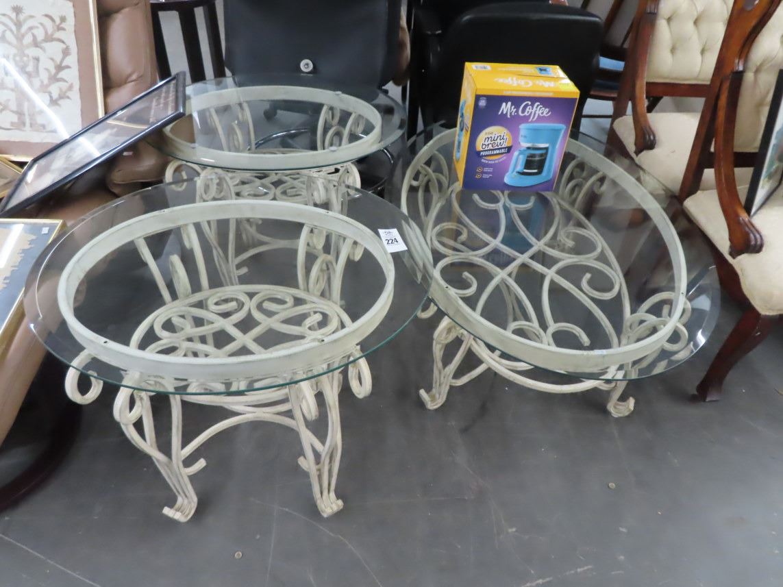 Ornamental Iron/Glass Coffee/End Tables Set - 3