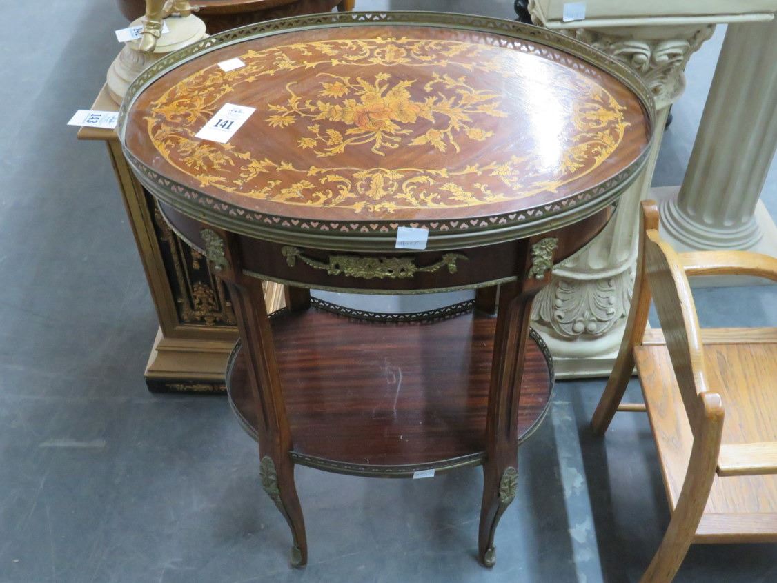 Ornate Brass Trim Oval Side Table