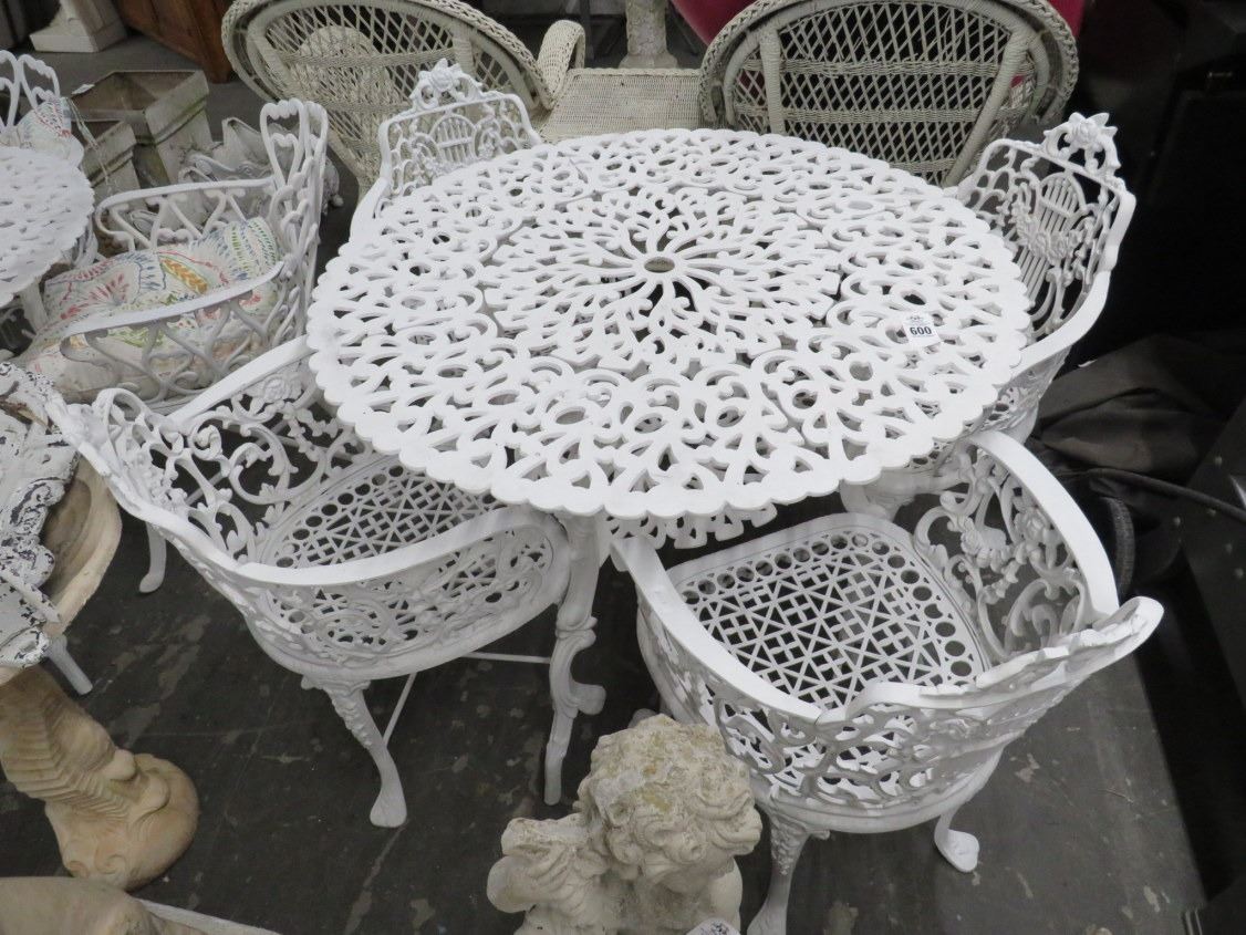 Ornate Cast Alum. Round Garden Patio w/4 Chairs