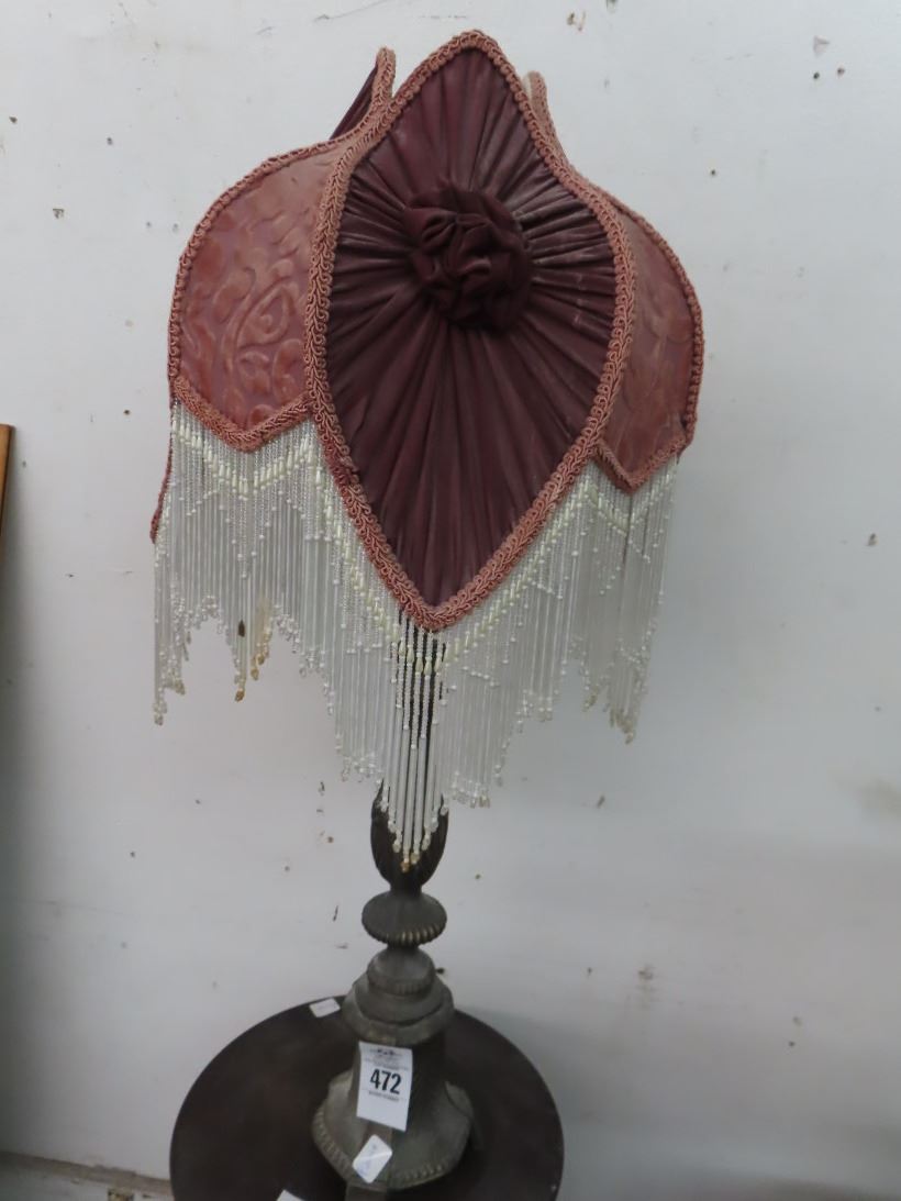 Ornate Cast Table Lamp With Boudoir Shade, Stick Lamp