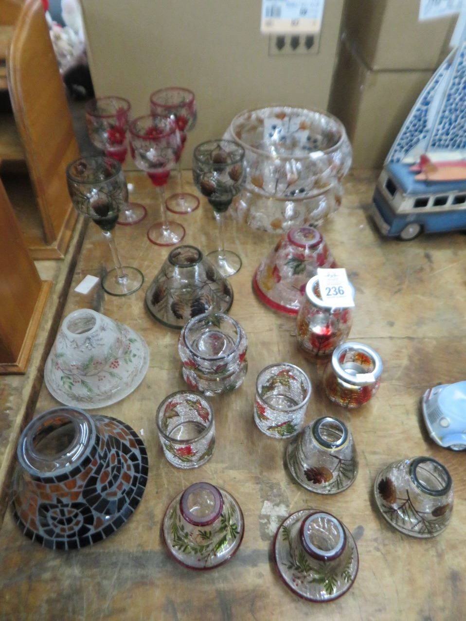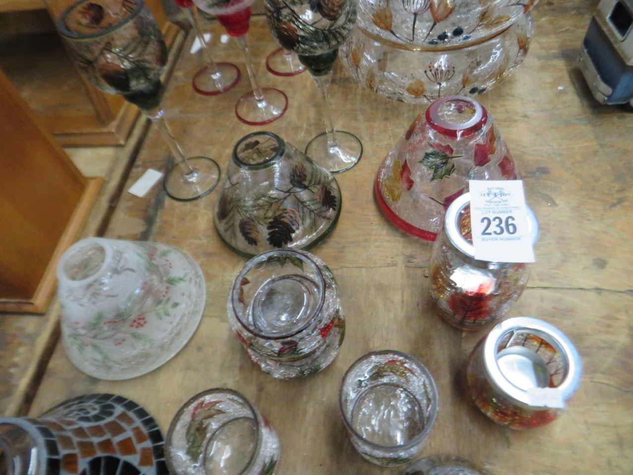 Ornate Crackle Glass Bowls/Stems/Candle Holders