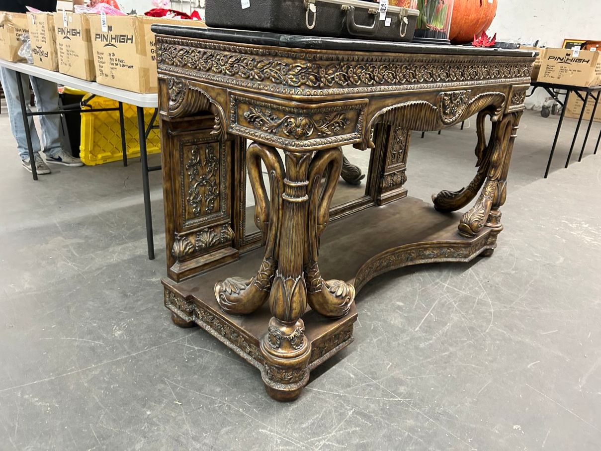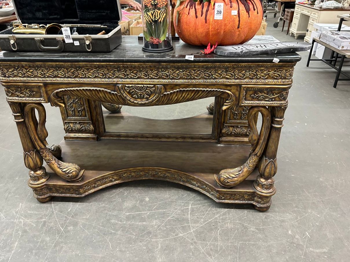 Ornate Fish Figural Marble Top Hall Table w/Mirrored Back